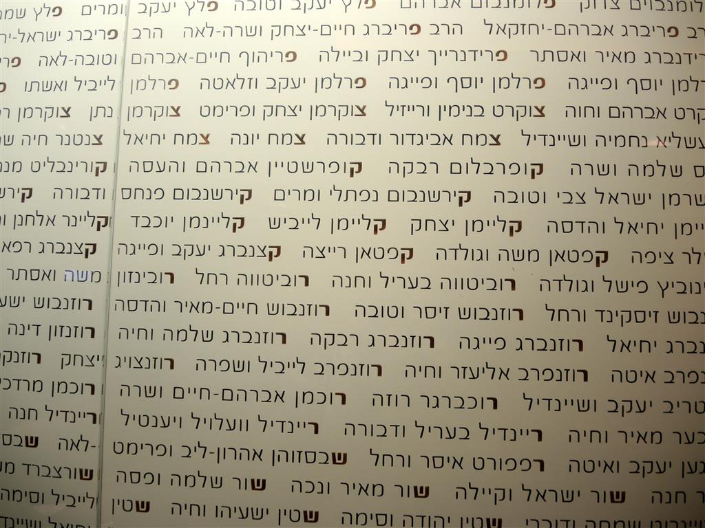 Их так много, имен этих, что в первую минуту теряешь связь букв и слов. Словно бесконечная вязь, тянутся по всей стене строки, полные печали и несбывшихся надежд… Возможно, когда впервые заходишь в синагогу больницы «Ихилов», то не обращаешь на эти маленькие буковки внимания. А обратить на них внимание нужно…