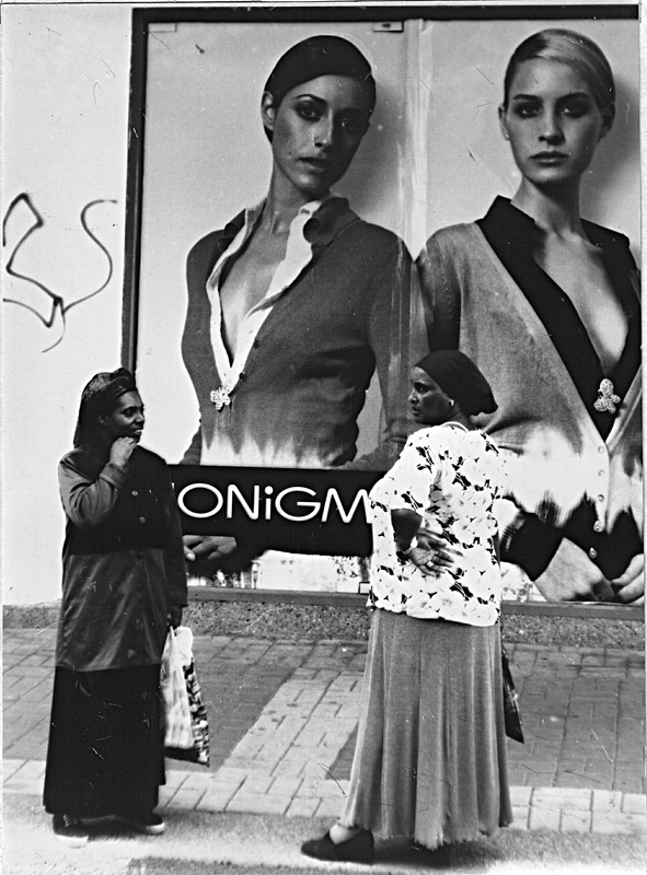 Другому фото я бы дала название «Четыре грации». Вглядитесь в них… На фоне большой рекламы магазина модной одежды «Хонигман» с изображением шикарных манекенщиц стоят две женщины из эфиопской общины. У них своя своеобразная красота, свой стиль одежды, и этот удивительный контраст двух миров и четырех женщин гармонично вписался в фотосюжет Константина Красного.