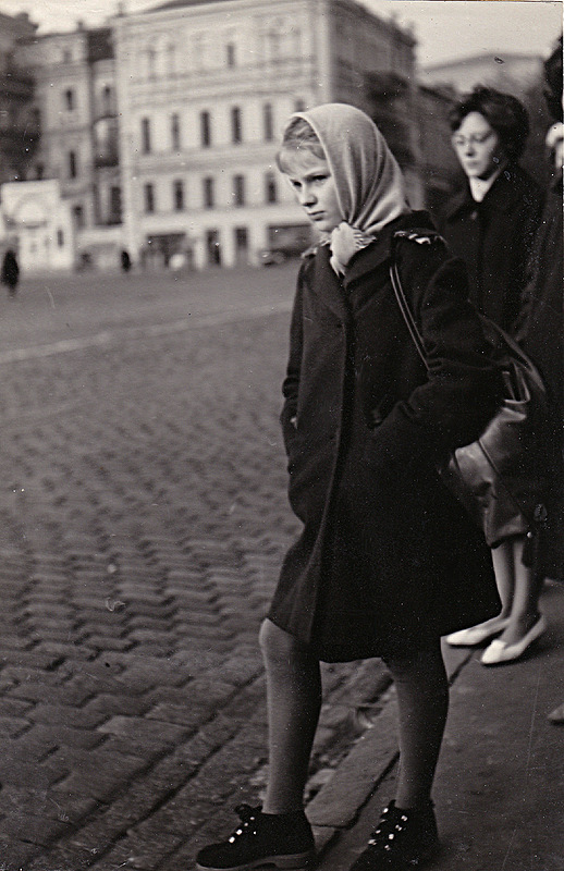 Как сегодня можно представить полупустые центральные трассы столицы Украины? Где сегодня можно увидеть мужчин в фетровых шляпах и красивых девушек в простых крестьянских платках? Кто сегодня помнит киоски с шипящей газировкой по три копейки? Впрочем, главное в фотографиях Константина — это люди и их эмоциональный настрой. Девушка с лицом мадонны, одетая в старое пальтишко, ждет автобуса…