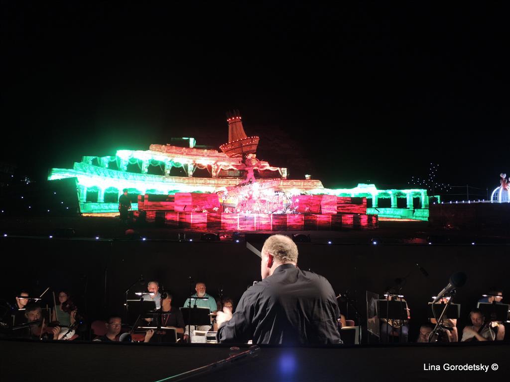 Это было сильно, динамично и незабываемо. Кстати, по оригинальной концепции Михала Знанецки в финале оперы в разных концах сцены умирают несколько Виолетт в то время, как главная героиня находится в ее центре. А Альфредо по замыслу режиссера исполняет свою прощальную арию на одной из боковых сцен. Но маэстро это не устроило, и Даниэль Орен настоял на классической концепции. Сегодня Альфредо будет рядом с любимой. Могу только представить, сколь эстетического удовольствия сегодня ждет любителей оперы, специально приехавших к подножию древней крепости в иудейских горах. Они же смогут стать поздними посетителями кафетерий «французского бульвара», раскинувшихся перед входом в восьмитысячный зал под открытым небом.