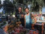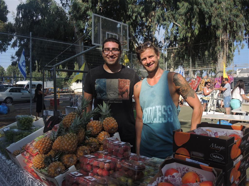 Но настоящей изюминкой для меня стало знакомство с двумя молодыми людьми. Их столик располагался в центре площадки и сразу привлекал к себе внимание Яркие товары, экзотические фрукты и улыбающиеся продавцы, у которых в руках все «горит». Знакомьтесь: Эльад, житель Нетивота привез товары из магазина своих родителей. Кроме того, его мама приготовила на продажу целые подносы традиционных сладостей выходцев из Марокко. Среди них, колечки, которые называют в Израиле «сфинж». Они, немножко напоминают бублички, хотя, все-таки, правильней, назвать их пышками. А помогает Эльаду с продажей товаров Захи — его друг из Кирьят Моцкина. Захи привезли в Израиль в 1991 году совсем малышом из Москвы, но русский язык он сохранил. А вот услышать, как вполне свободно общается на языке Пушкина Эльад из семьи марокканских евреев было для меня сюрпизом. Но этой разгадке быстро была найдена отгадка. Как оказалось, Эльад и Захи – однокурсники, они учатся в Одесском мединституте, осваивают профессию зубного врача. А пока друг помогает другу…
