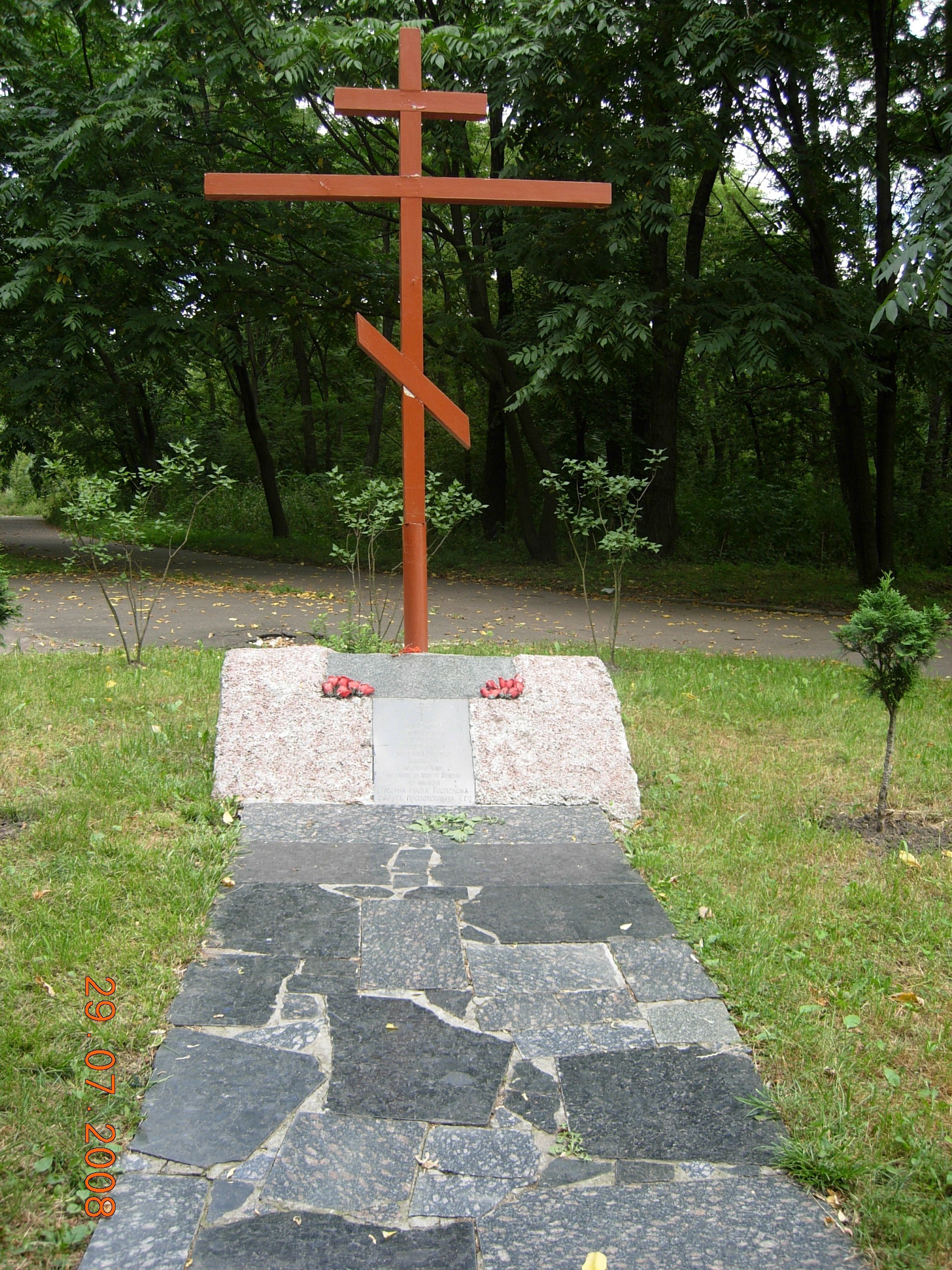 Над Бабьим Яром сегодня несколько памятников. И попала я к ним совершенно случайно, просто запутавшись в лабиринтовых тропах утопающего в зелени Сырецкого парка. Здесь чуть вдали от основной композиционной группы за эти годы возникли три новых монумента. Один из них: семисвечник «менора», установленный в 2001 году в честь посещения Киева бывшим в то время президентом Израиля Моше Кацавом. Второй – строгий крест в память о расстреле в ноябре 1941 года двух киевских священников, призывающих в борьбе с оккупантами.