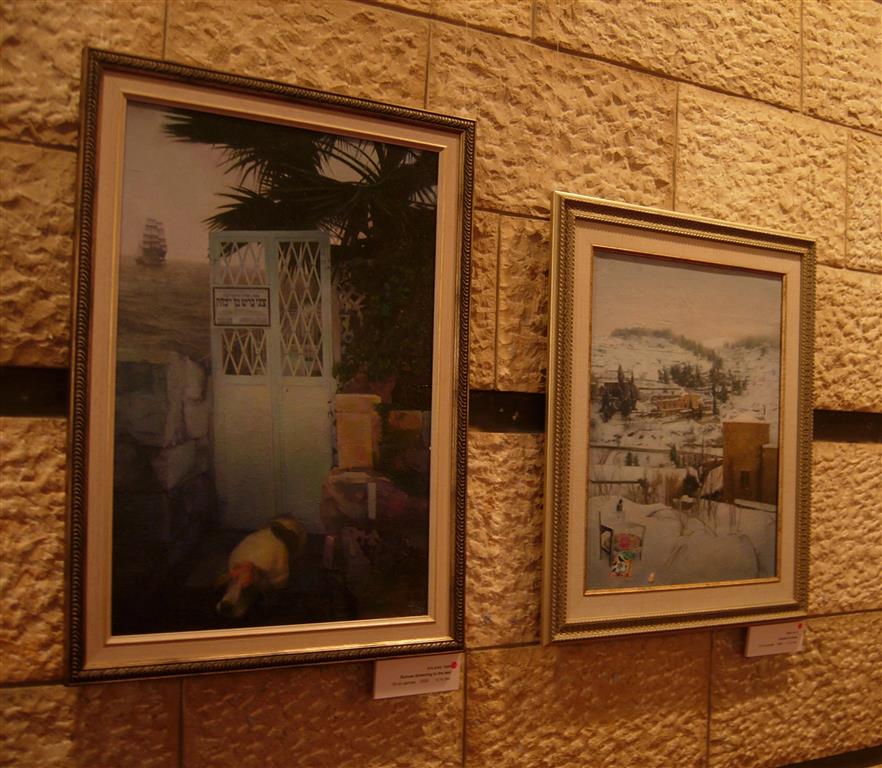 Гости подолгу стояли около каждой картины, открывая для себя огромный мир его полотен. Например, совершенно завораживает зимний пейзаж Иерусалима, заснеженного района Эйн-Карем, и … неожиданная в нем, почти пастернаковская «свеча горела», в данном случае — на снегу, мерцая единственной теплой точкой этого белоснежного полотна.