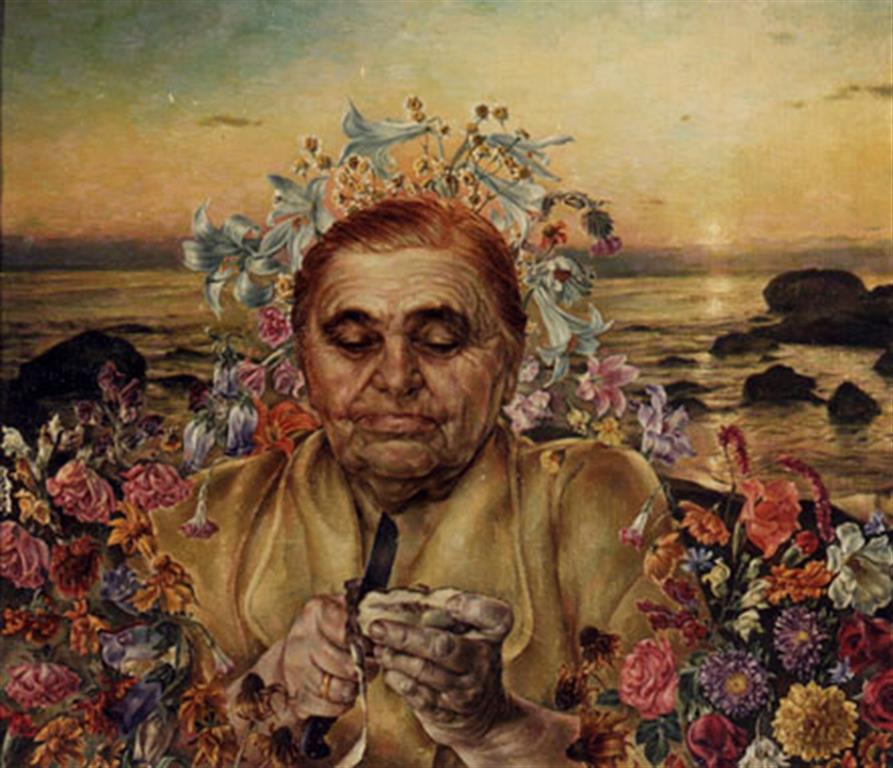 Она написана 34 года назад… морщинистое лицо, руки без намека на маникюр, простое обручальное кольцо советских времен, закрытое платье…. Мама сосредоточенно чистит картошку, не замечая ничего вокруг. Так, часто прелести жизни проходили мимо наших мам, складывая витраж их судьбы из рабочего дня и вечера на кухне. А на картине художник подарил матери море, и цветы, и закат теплого солнца. И, несомненно, большую любовь, которую нужно успевать дарить вовремя…Сегодня оригинал этой картины находится в Австралии.