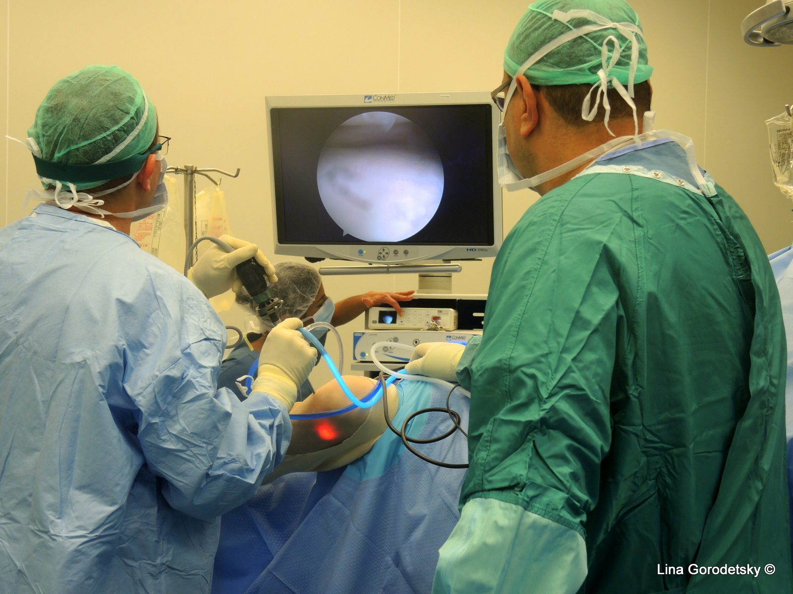 Место на операционном столе скоро займет четырнадцатилетний Авраам, улыбчивый мальчик в черной кипе. Рядом с ним — молодые родители. Конечно, волнуются, но вида не подают. И в операционную Авраама не сопровождают. Мужчина все- таки — их сын. Он тоже не демонстрирует свое волнение, когда доктор Сотман наклоняется над ним и готовит к наркозу. У паренька разрыв мениска коленного сустава. Он нуждается в артроскопии – внутреннем осмотре сустава без его вскрытия. Для этого в полость сустава через маленький разрез вводится камера.