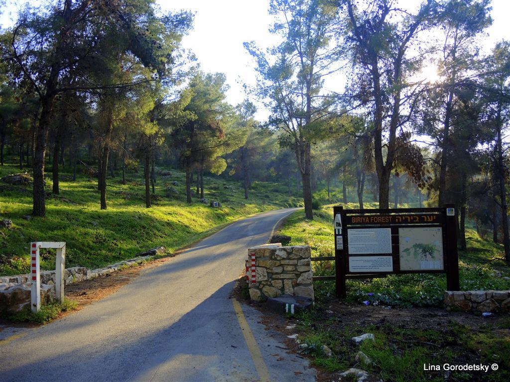 Лес Бирия появился на карте нашей страны в середине прошлого века, во многом при поддержке Общества охраны природы «Керен Каемет ле-Исраэль». Иерусалимская сосна, кипарисы, дубы, Канарские сосны, Атлантические кедры  смешались  здесь на ста пятидесяти дунамах   земли,  создавая неповторимую ауру.