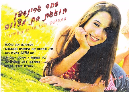 Завтра Шахар Гриншпан будет отмечать бат-мицву, которая запоздала в ее судьбе почти на шесть лет. Она должна была состояться в зале торжеств, в декабре 2009 года. Как именинница  ждала этот день! У многих из девчонок уже были торжества, а теперь — Шахар должна была стать Принцессой на этот праздничный вечер, и кружиться в танце, получать подарки, быть самой красивой и нарядной. Уже все было готово, и приглашения, и платье, и именинный торт. И не было ничего…