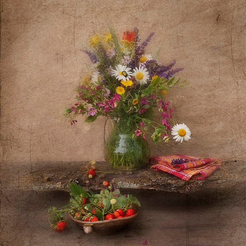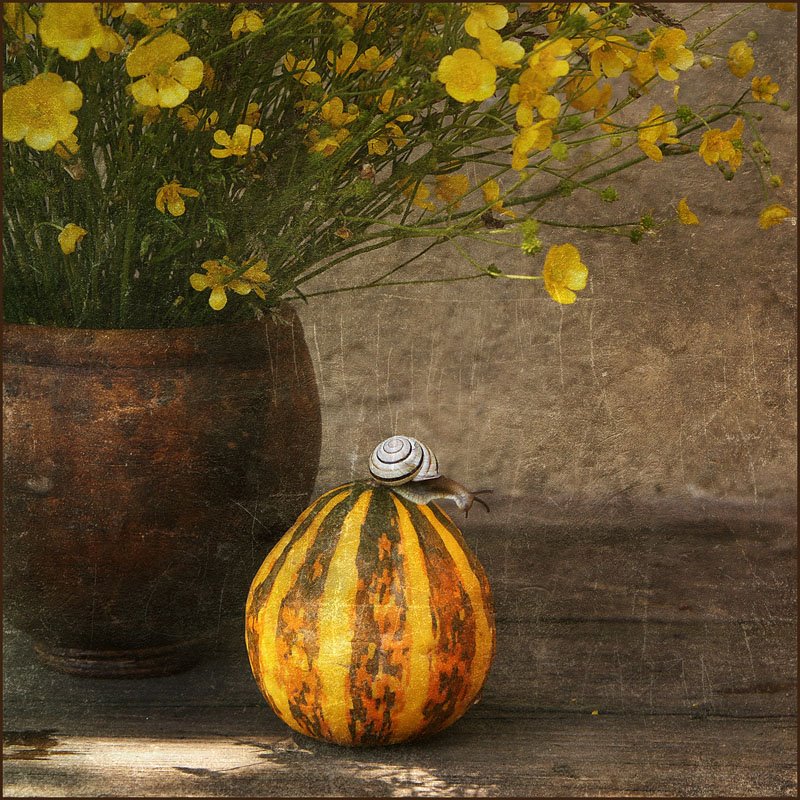 Мгновенья красоты, которую умеет увидеть только художник. И не обязательно взять кисть в руки, можно останавливать мгновенья фотоаппаратом, сфокусировать кадр, нажать кнопку спуска и… И меня всегда поражает, как обычное может превращаться в волшебное. Натюрморты, а на них, яркий чай и скромные орехи, улитки и жучки, раскрытая книга и детский рисунок, бабочки и цветы… Множество необыкновенных, но всегда живых букетов цветов.
