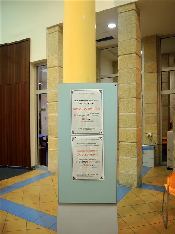 Спасибо, Стас. Выставка проходит в городской библиотеке Кирьят-Яма, города- спутника Хайфы. Думаю, что она еще открыта. Если хотите более точно, то могу уточнить у ее организатоторов.