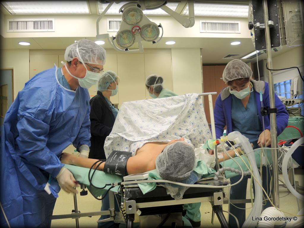 Первым приступает к работе анестезиолог. Он готовит Лиат к безболезненной операции.