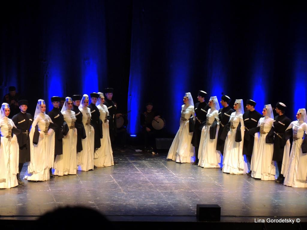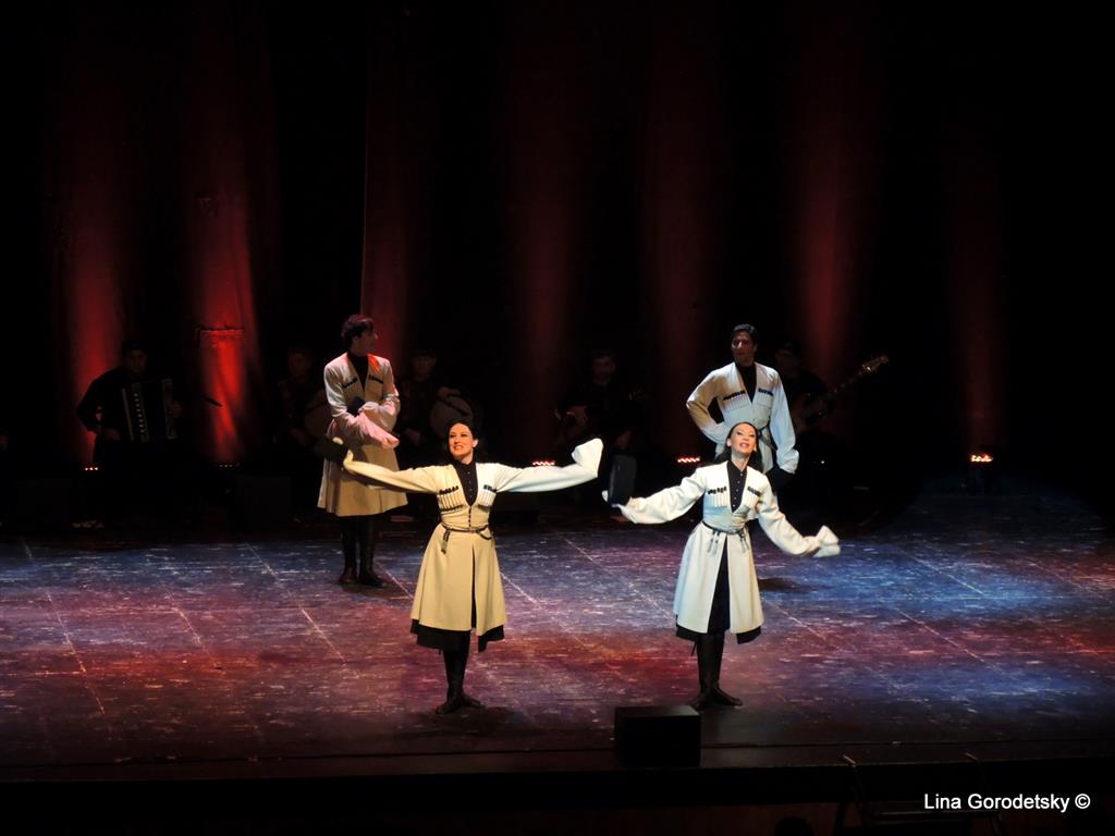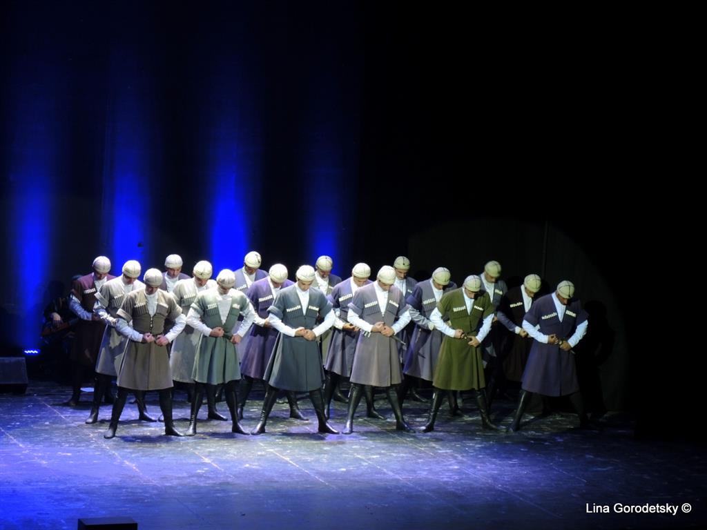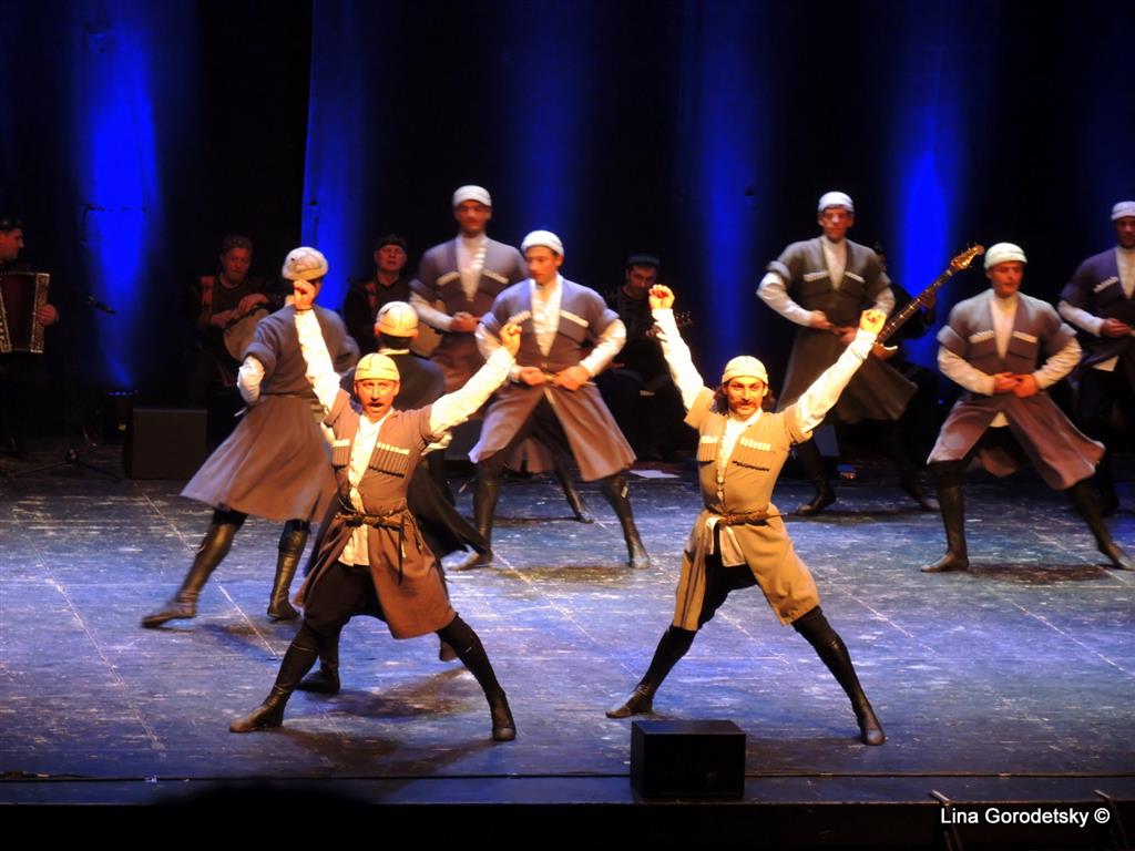 Вот уж воистину, танец — искусство без границ, не требующее перевода. Главное, почувствовать что эти высокие профессионалы исполняют каждое свое отточенное движение от всего сердца, что звучит музыка близких тебе людей и тогда становятся понятными танцы, о которых раньше даже не слышал. Ведь мы были знакомы в основном с «Лезгинкой», а в репертуаре хореографического коллектива, которому в этом году исполнилось 70 лет — танцы различных народностей Грузии, Осетии а также театрализованные сюжетные постановки с музыкальным сопровождением на грузинских народных инструментах. Среди танцев, исполняемых артистами ансамбля — «Картули», женский танец «Самая» «Кинтоури», «Давлури», аджарские танцы «Гандаган» и «Хоруми», азербайджанский танец «Джейрани», осетинские «Симд» и «Шуточный танец», «Илоури», «Хевсурский танец» и другие номера.