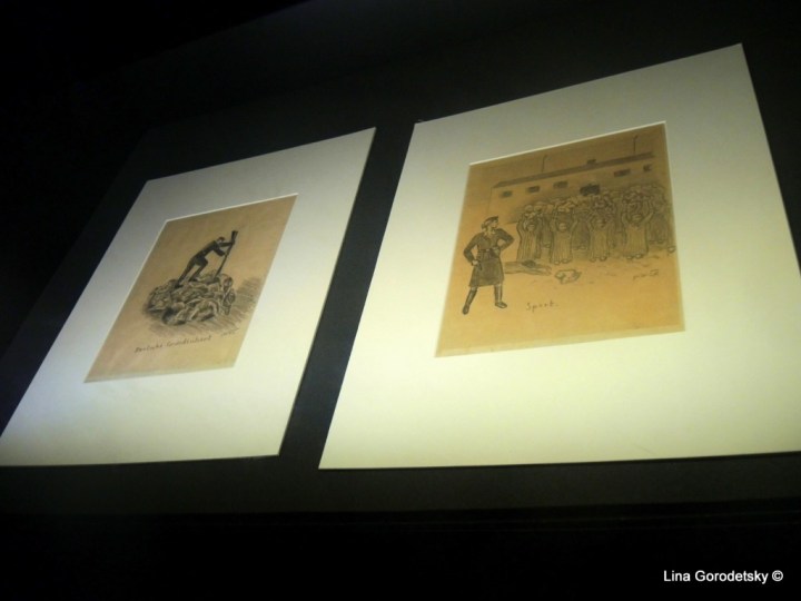Нельзя не содрогнуться от боли, идя по залам музея, где представлены фотоэкспозиции и материалы о лагерях смерти и о жизни в гетто. Видеть бережно хранимые под стеклом крошечные ботиночки, скрипку–восьмушку в треснутом футляре, детское платьице. Вещи, пережившие своих хозяев.