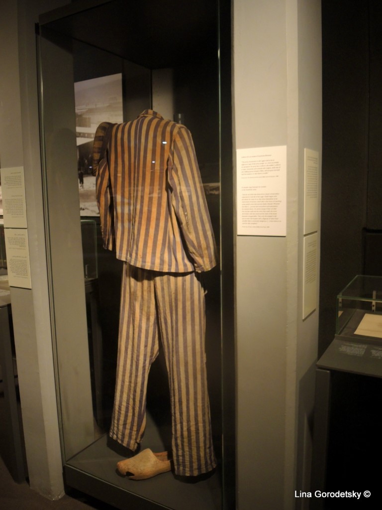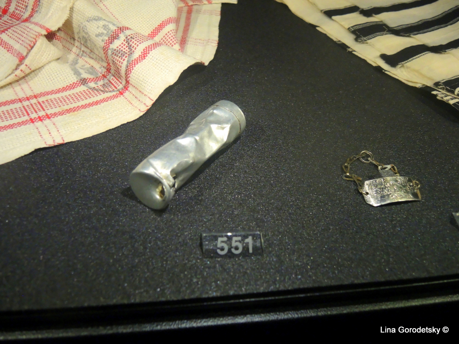 Нельзя не содрогнуться от боли, идя по залам музея, где представлены фотоэкспозиции и материалы о лагерях смерти и о жизни в гетто. Видеть бережно хранимые под стеклом крошечные ботиночки, скрипку–восьмушку в треснутом футляре, детское платьице. Вещи, пережившие своих хозяев.