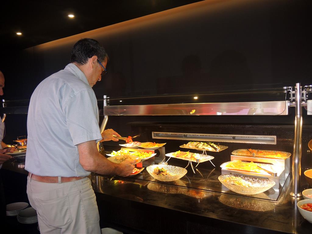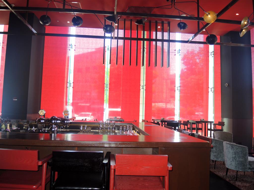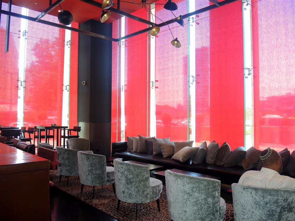 Перекусить в «черно-красном» гостиничном ресторане, расположенном в лобби.