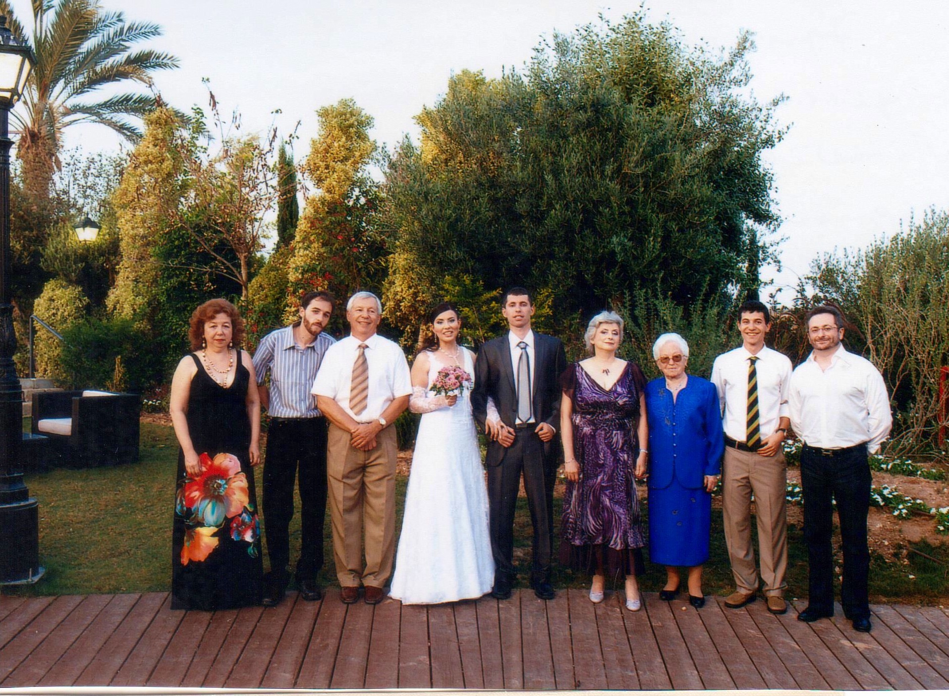 6Свадьба старшего внука Жени. Слева направо: дочь Света, внук Арик, сын Борис, молодожены- Елена и Женя, жена сына Нелли, Фрима, младший внук Миша.