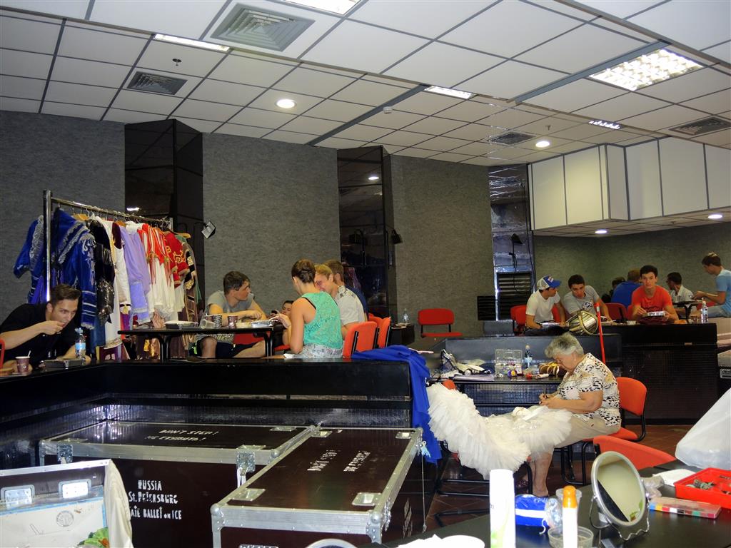Зато Татьяне, руководителю костюмерного цеха, и ее сотруднице не до отдыха. Надо подготовить все к вечеру, проверить, не нуждается ли в починке после спектакля в Беер-Шеве, где накануне начал гастроли питерский театр на льду.