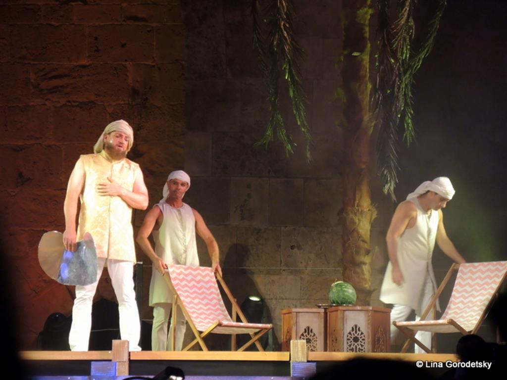 А улыбаться хотелось от души, молодые актеры были чудесны, сцены  динамичны и совсем не скучны, языковой барьер не смущал, а музыка было совершенно волшебная. И даже звуки настоящего муэдзина, фестиваль ведь в Акко :),  ворвавшиеся прямо во время арии Констанцы и влюбленного султана, и остановившие репетицию не испортили впечатление.  В данном случае, это показалось даже органичным дополнением.