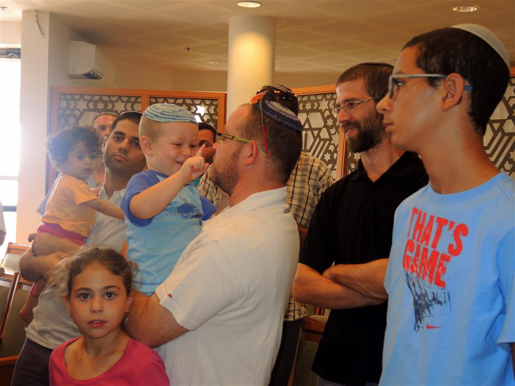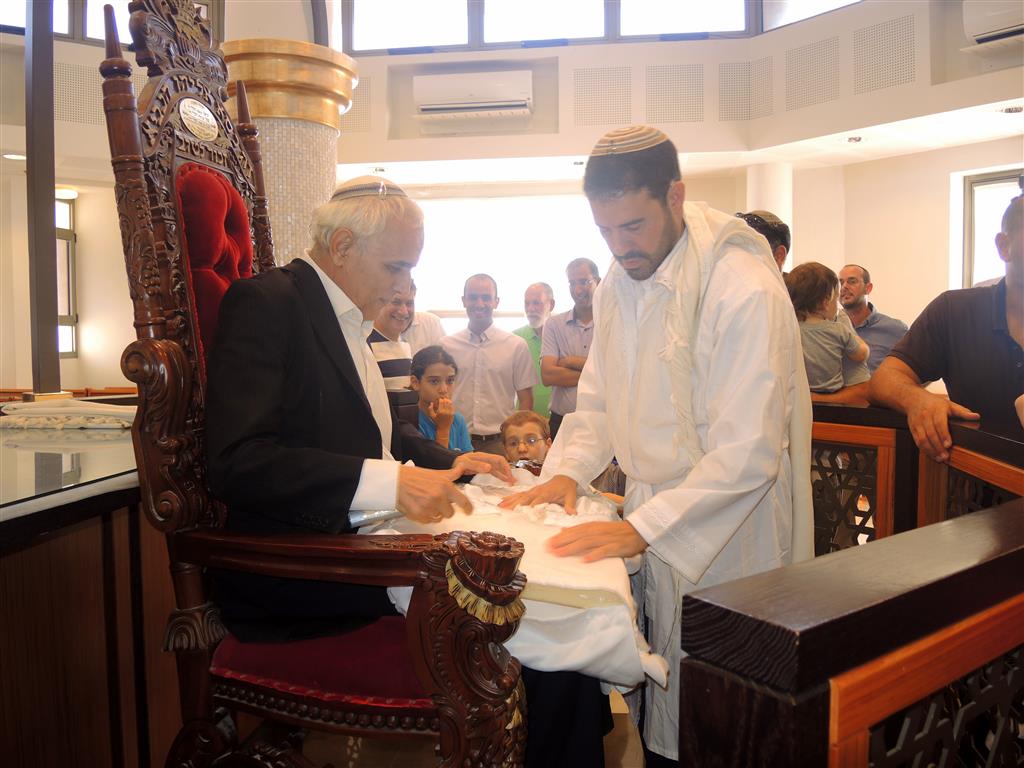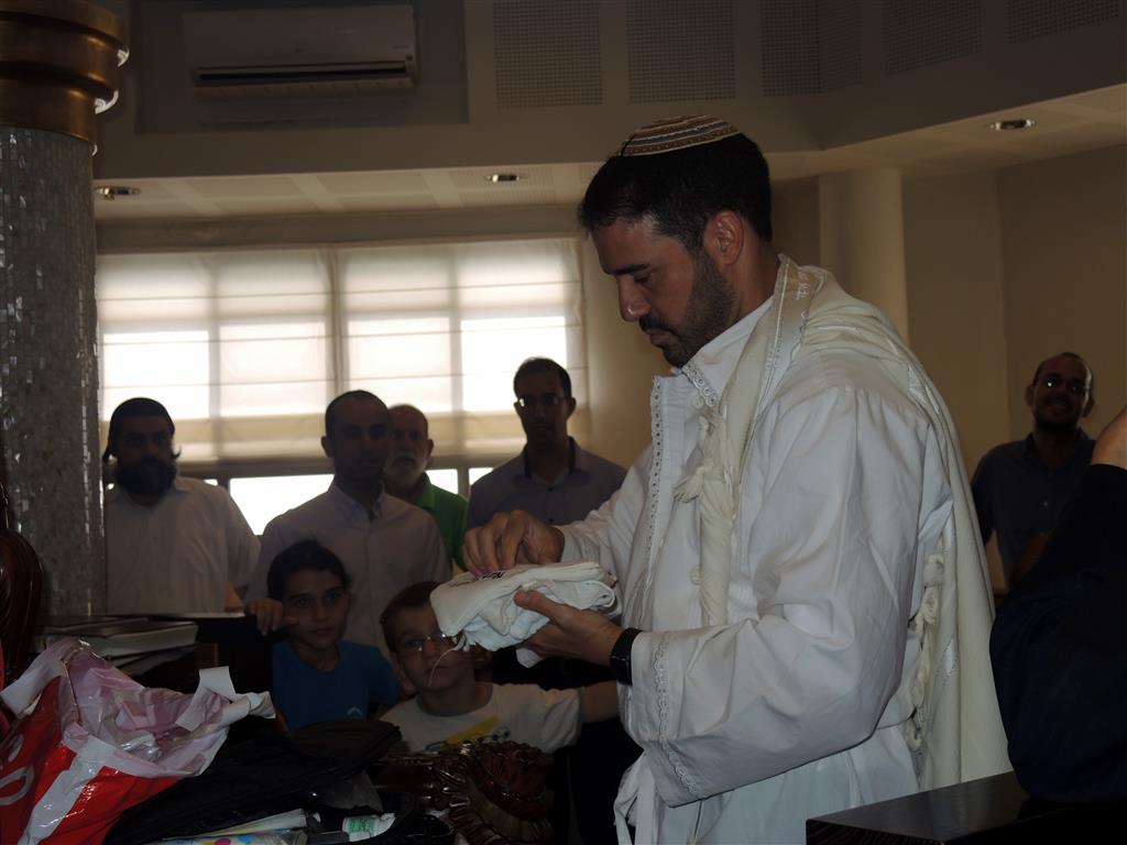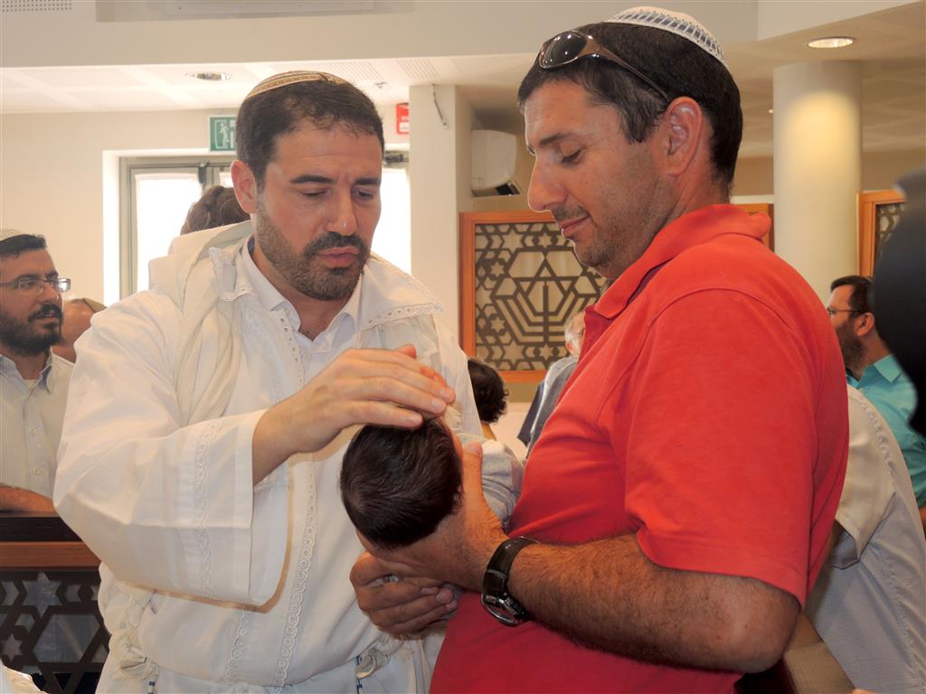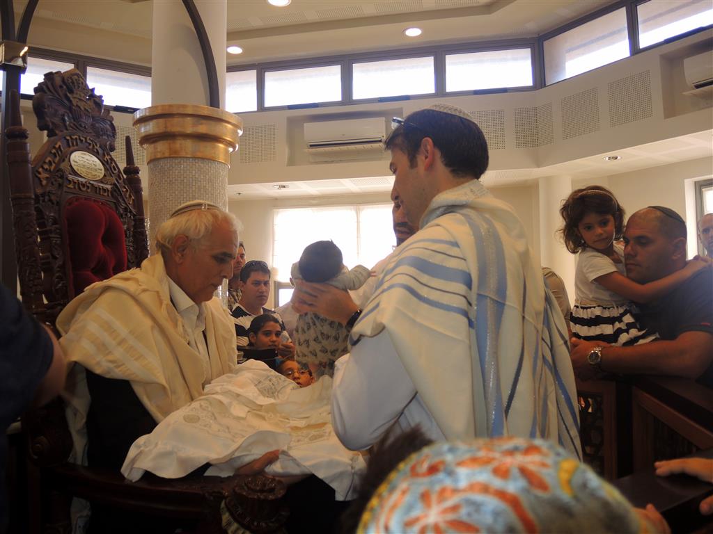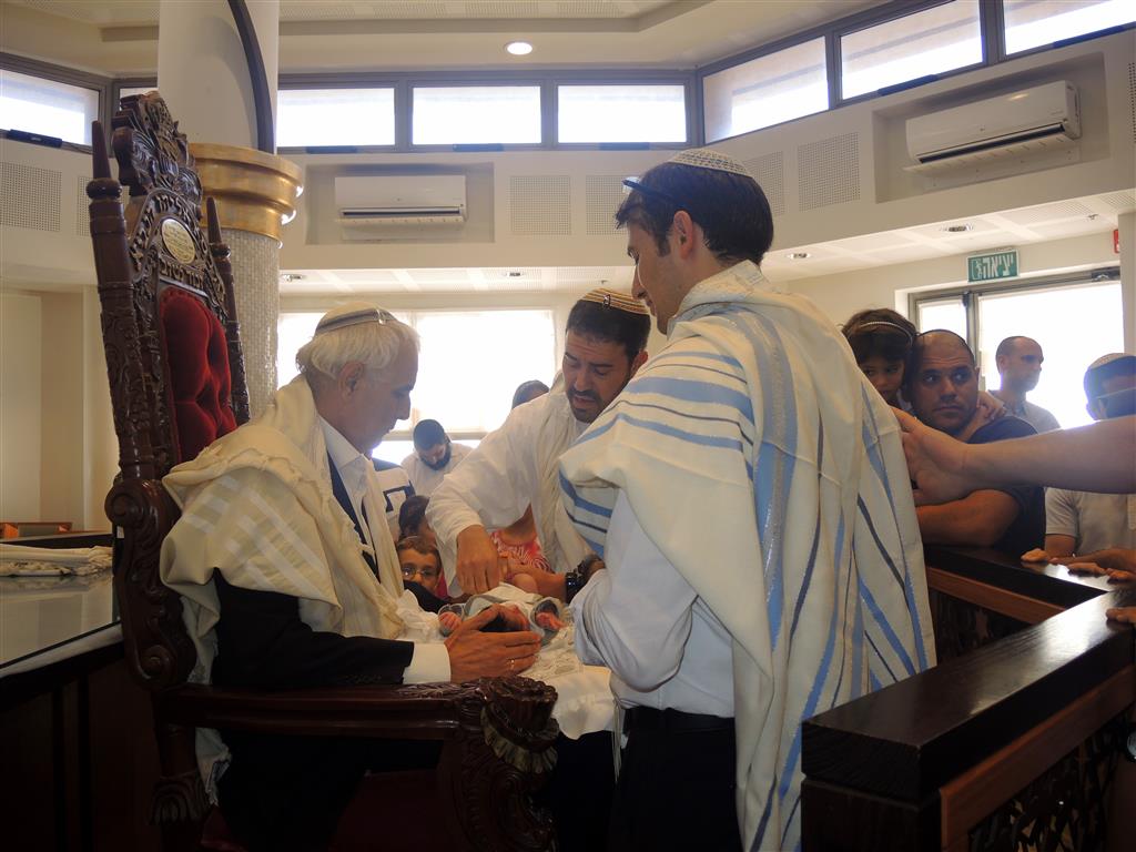 В одной милой моему сердцу семье восемь дней назад родился малыш. А вчера в поселении Морешет был обряд обрезания «брит-мила». Он проходил очень красиво и торжественно. В большой синагоге собрались друзья и родные молодых родителей.