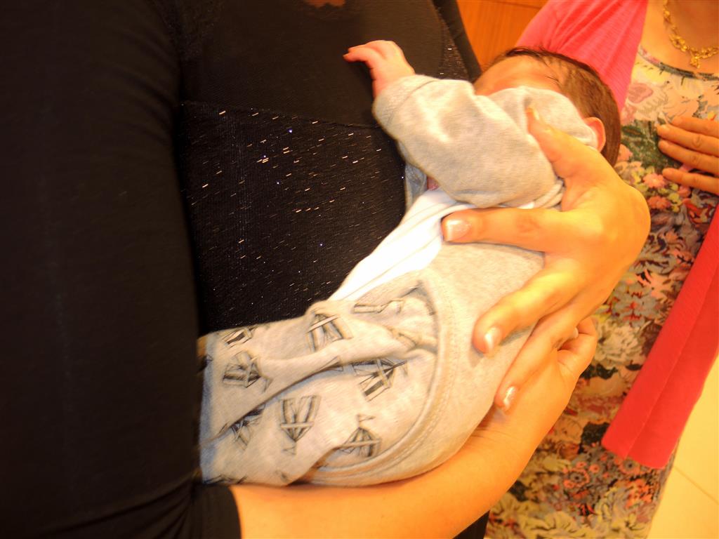 Как осторожно из рук в руки передавали малыша, чтобы положить его на колени к деду.