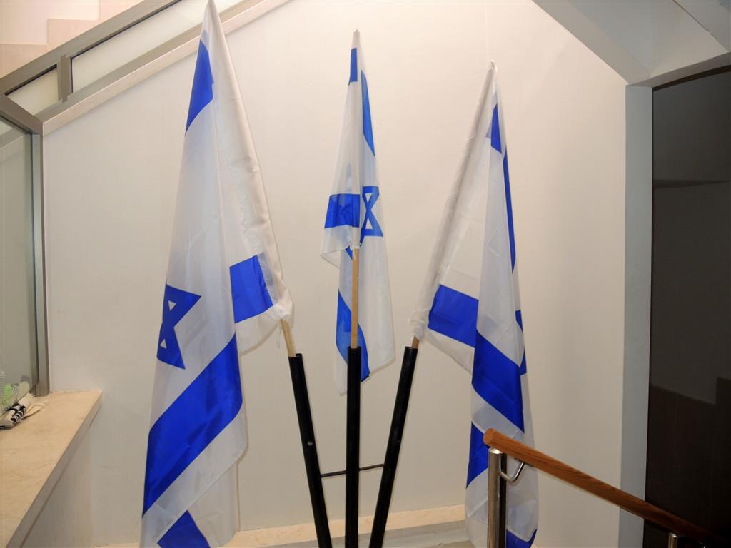 Эти флаги государства Израиль установлены в синагоге поселения Морешет. Не в честь праздника, не по поводу Дня Независимости. Они всегда — на своем месте. Может быть, и в этом залог любви детей и взрослых к своей Земле.