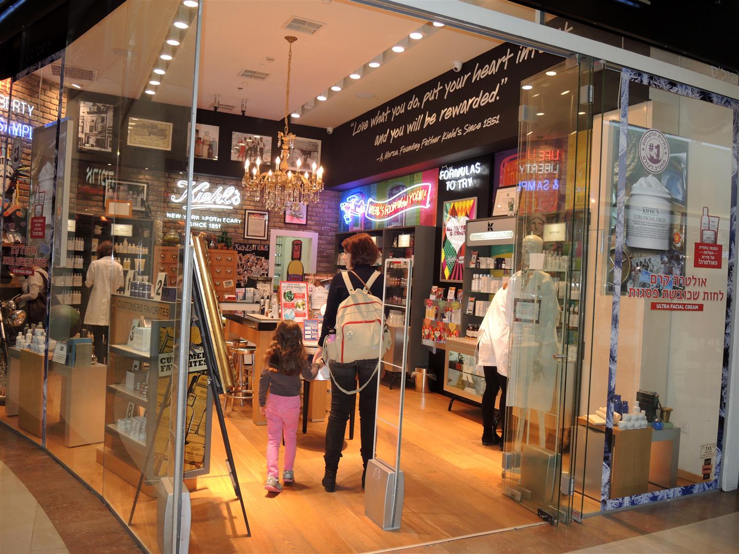 В Израиле эта фирма совсем молодая. Лишь три года назад открылся филиал Kiehl’s. Сейчас их два, пока только в районе Тель Авива, в торговом центре «Рамат Авив» и в «Дизенгоф Центре» Цены на товары вполне соответствуют ценам на аналогичную продукцию ведущих косметических фирм.