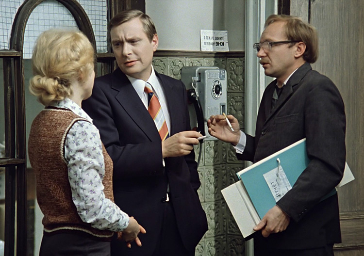 Кстати, если  помните эпизод в «Служебном романе», когда секретарша Верочка беседует по телефону с супругом, который заявляет ей, что понял корень их семейных проблем, им нужен ребенок, а Верочка всплескивает руками и смотрит на часы, заявляя, что еще не конец рабочего дня. )) Так вот, мужа в телефонной трубке исполнил Олег Басилашвили. 🙂 А, вообще,  сам Басилашвили представляд себя только в роли скромного инженера неудачника Новосельцева и никак не представлял, что справится с ролью самовлюбленного и амбициозного Самохвалова.  Но справился на «ура»
