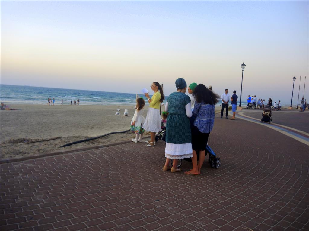 Зато в районе нашей Хайфы есть море. И многие соблюдающие традиции евреи перед закатом идут к берегу Средиземного моря , чтобы побыть рядом с морскими волнами и совершить обряд «Ташлих». Красивый обряд, в котором принимают участие целые семьи.