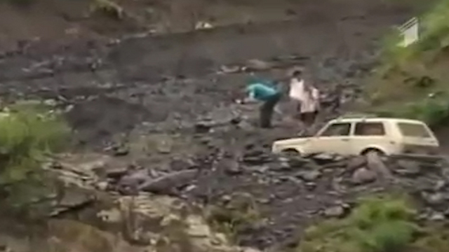 Я вместе с Иври пытался взобраться по склону, но он был слишком крутым. И вдруг я заметил фары приближающейся машины. В этот момент я все таки добрался до верха. Из машины вышли трое местных жителей. Я собрался вернутьяя за сыном, они увидели, что я хочу спуститься, и запретили это делать. Но я все же по веревке спустился вниз. Там я связал себя и сына и крикнул им, чтобы тянули нас наверх».