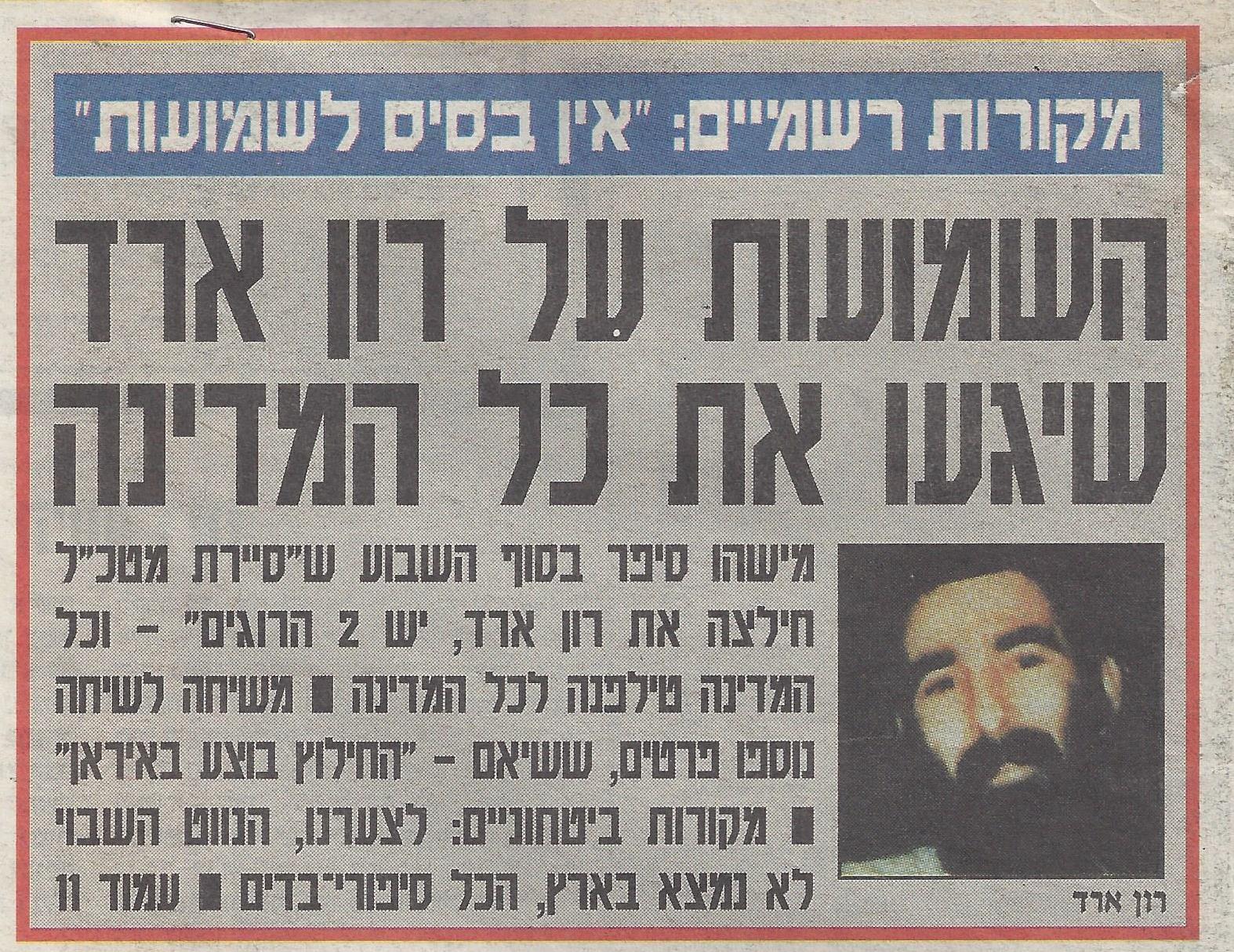 Много лет прошло. Много попыток было найти Рона. Два года с движением «Амаль» Израиль вел переговоры об освобождении Арада, но в 1988 году они были прерваны. Далее, есть только предположения, но нет фактов.
