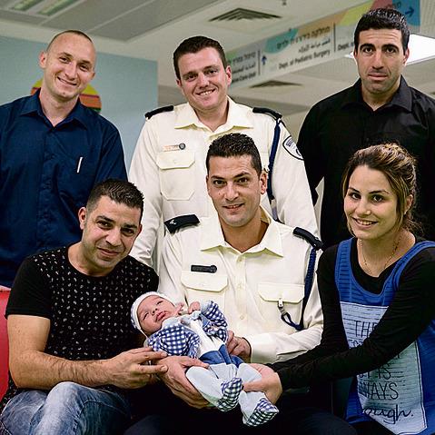 Кроме парней, которые находились в служебном автомобиле. Они вышли, чтобы узнать в чем проблема и обнаружили семью из Восточного Иерусалима, взволнованных родителей с маленьким ребенком, Они спешили в больницу. «Он не дышит,» — в слезах сказал отец полуторамесячного мальчика.