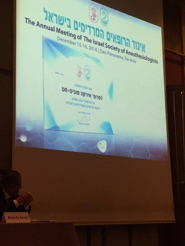 Вчера на съезде израильских анестезиологов, который традиционно проходит в декабре в Тель-Авиве, героиня моего очерка, профессор Ирена Монис получила статус, которым награждают впервые. Статус специалиста, стоявшего у истоков создания израильской анестезиологии. Ирена сейчас болеет и наградной лист вручили ее дочери, профессору Идит Матот.