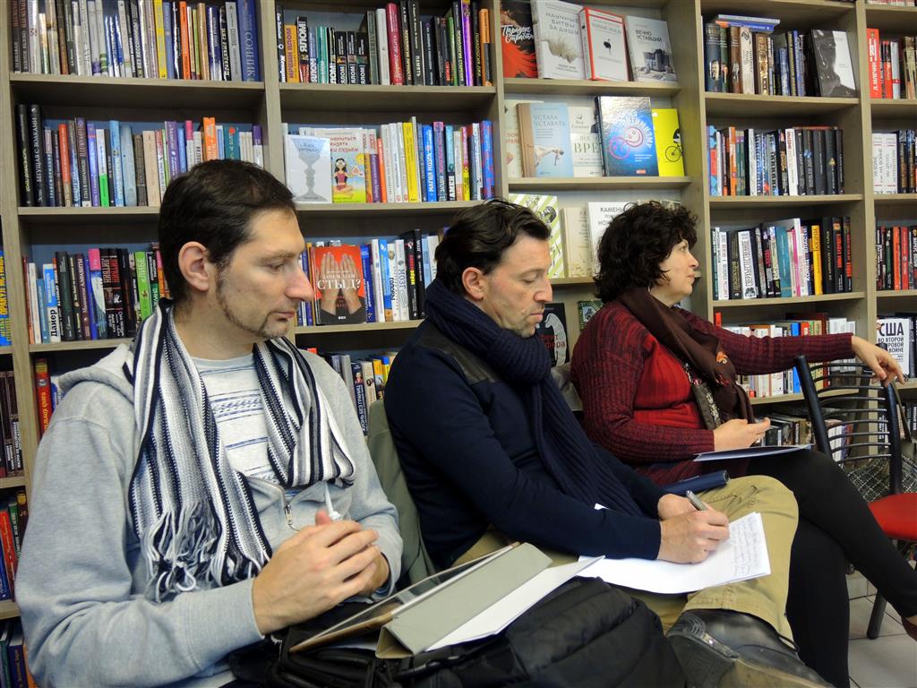 В филиал сети израильского книжного дома «Исрадон» пришли хайфские журналисты и блогеры, чтобы пообщаться с владельцем сети «Исрадон» и познакомиться с историей русскоязычной книги в Израиле.