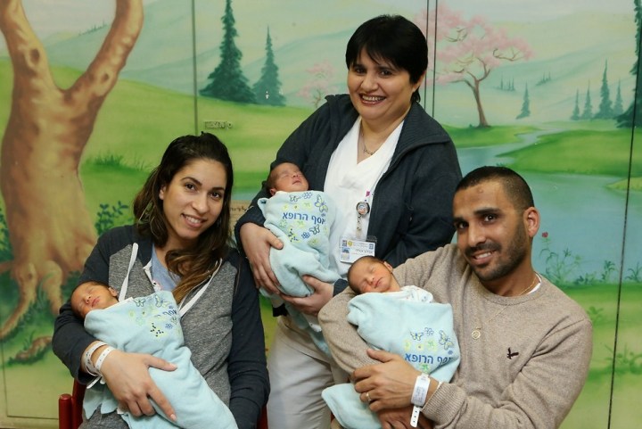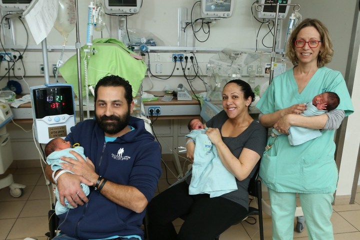 И такой же подарок преподнесли старшему пятилетнему сына Натали и Рои Махбош из Рамле. У них в тот же день в той же больнице родились два сыночка и лапочка — дочка. «Так в одно мгновенье, мы стали многодетной семьей», — смеется Рои.