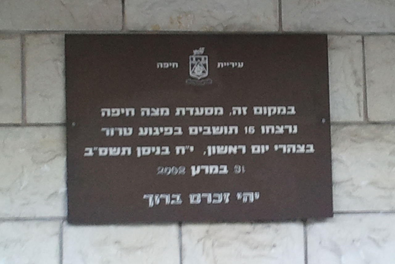 Ресторан «Маца», как я уже и сказала, как и хайфский ресторан «Максим», отстроен на прежнем месте и по-прежнему полон посетителей. Лишь на стене — маленькая мемориальная табличка.