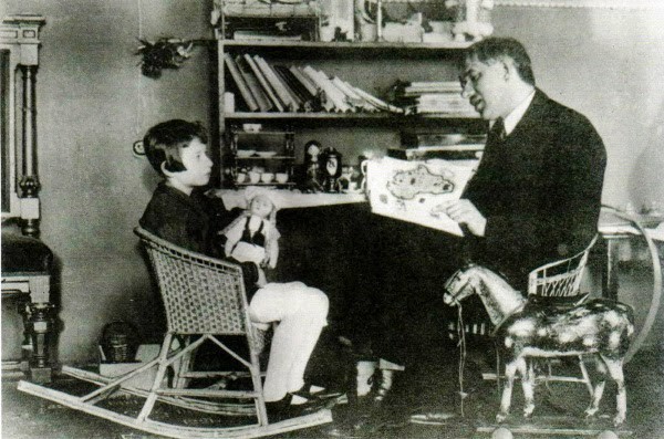 На этой фотографии Владимир Маяковский с маленьким Борей Чуковским