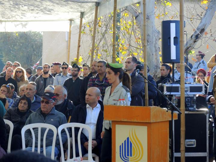 Присутствовал на церемонии и бригадный генерал, бывший депутат Кнессета Эфи Эйтам. Он много лет живет в поселке Нов и, конечно, хорошо знаком с семьей Бен-Ари.
