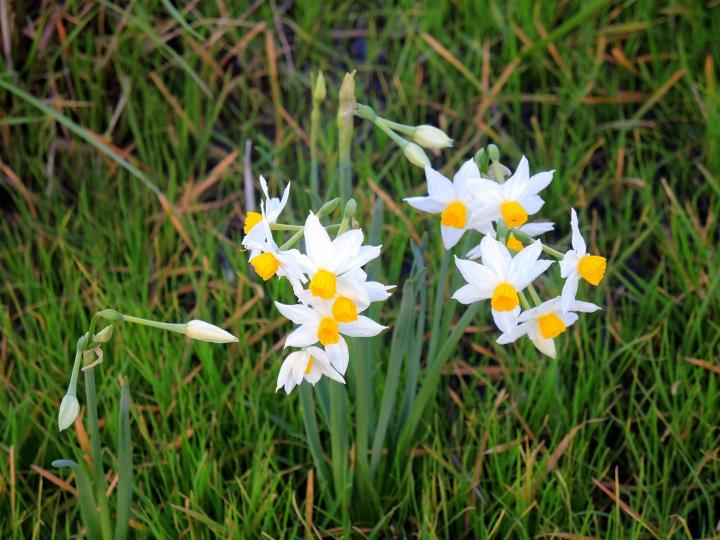 А на лугу распустились первые зимние цветы — нарциссы, маленькие солнышки земли Израиля.