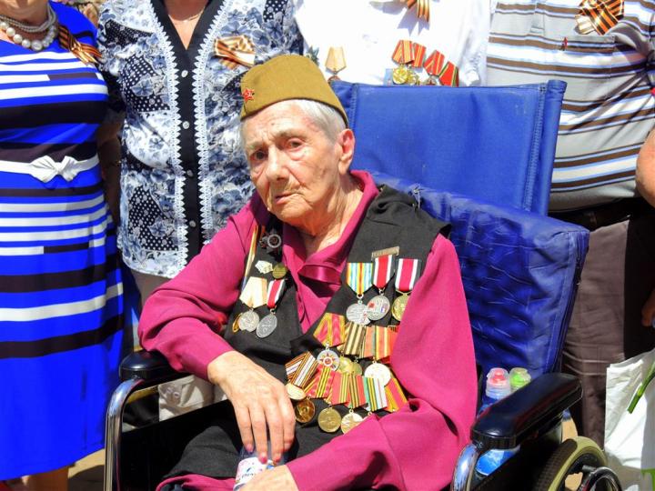 А Раисе Менакер уже 95 лет. Ее на инвалидной коляске привез сын. Раиса воевала на 3 Белорусском фронте, была полковой машинисткой, да, она не была в бою, но все тяготы военных будней почувствовала сполна…