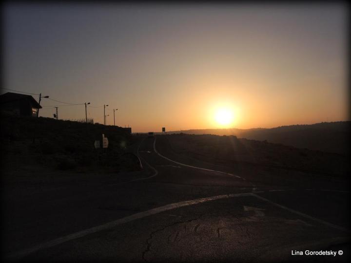 Там, на выезде из Кармеля и встретила я Закат. Попросила нашего гида, знатока Иерусалима, Иудеи и Самарии Элиэзера Фридлянда остановить автомобиль и сфотографировала это одно из красивейших явлений Природы.