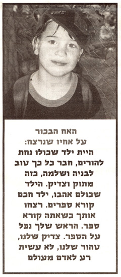 Светлая Память раву Йосефу, Хане и их девятилетнему сынишке, которому не суждено было даже отпраздновать бар-мицву.