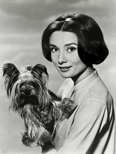 Stage and Screen. Personalities. pic: circa 1950’s. Actress Audrey Hepburn, portrait, and dog. Audrey Hepburn, (1929-1993) born in Brussels, a truly international star from a cosmopolitan background, starred in many films, eg. «My Fair Lady» and «Breakfas