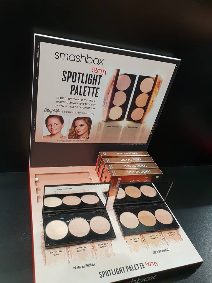 Израиль только открывает этот бренд. Его продукция была в сети «Априль», в павильоне в торговом центре «Азриэли» , а теперь появляются отдельные филиалы. Первый появился в Тель-Авиве, в торговом центре TLV FASHION MALL , а сейчас наступил час северян лучше познакомиться с косметикой Smashbox, и, может быть, полюбить ее. В Кирьят-Бялике в торговом центре «Кирьйон» открылся магазин Smashbox.