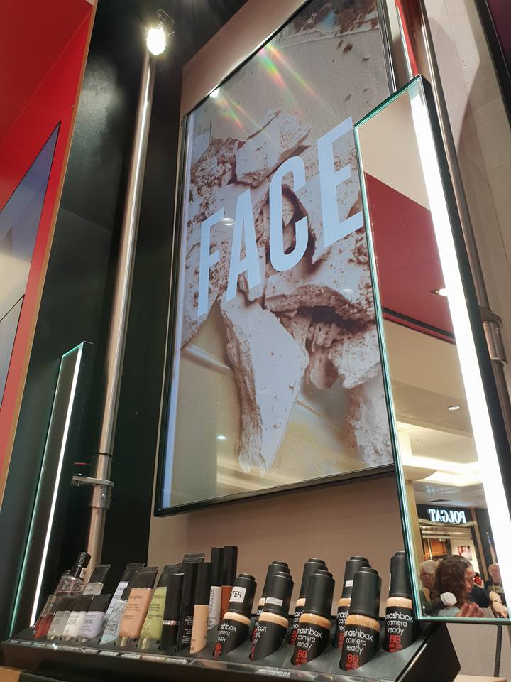 Совершенно необычный концепт его, очень удобное расположение, вся продукция на виду, все стены в зеркалах, и что это не толкьо магазин, но и студия косметики. Очень скоро, можно будет получить услуги у отличных визажистов сети Smashbox, настоящий профессиональный макияж, при этом зная, что косметика которой пользуются мастера самого высокого качества. Макияж ежедневный или для торжества, а может быть для фотосъемки, все варианты предусмотрены.