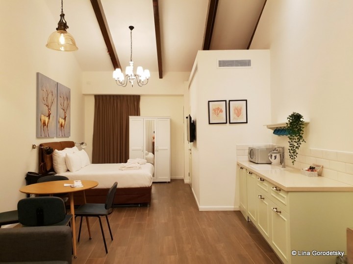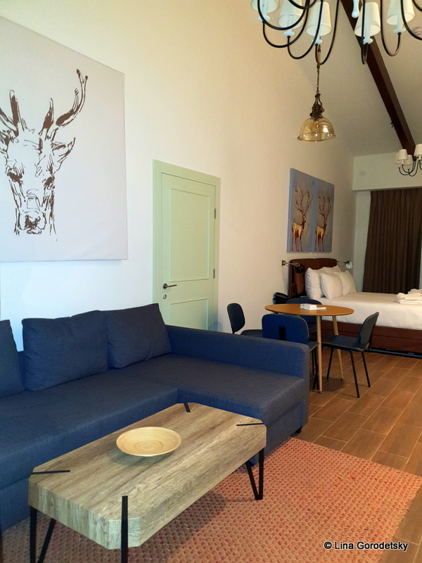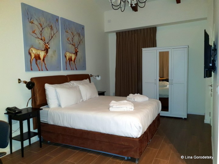 Кстати, вспомнив имя Шауль, необходимо рассказать, что история Гильбоа начинается с ТАНАХА, с битвы царя Шауля, которая произошла в этом районе, его гибели и гибели его сыновей. И имена двух вилл на территории отеля носят имена Давида и Йонатана, двух близких друзей… Возможно, когда то в этих краях скакали свободно олени, которые украсили стены номеров гостиницы.