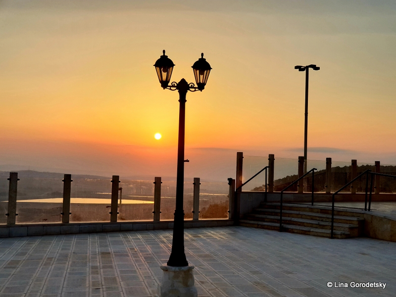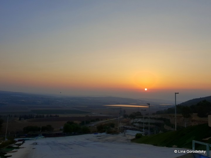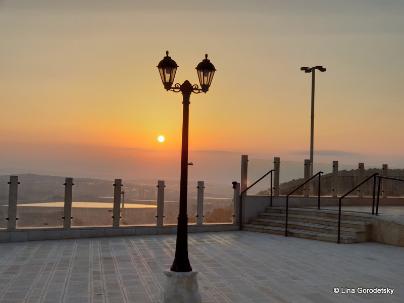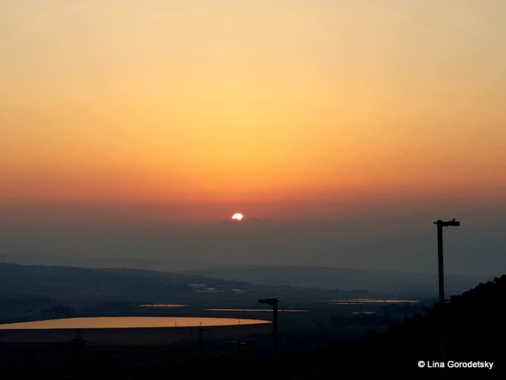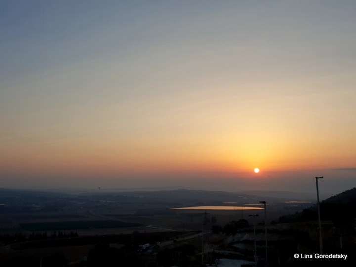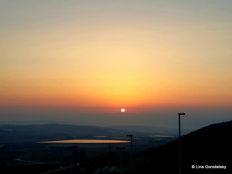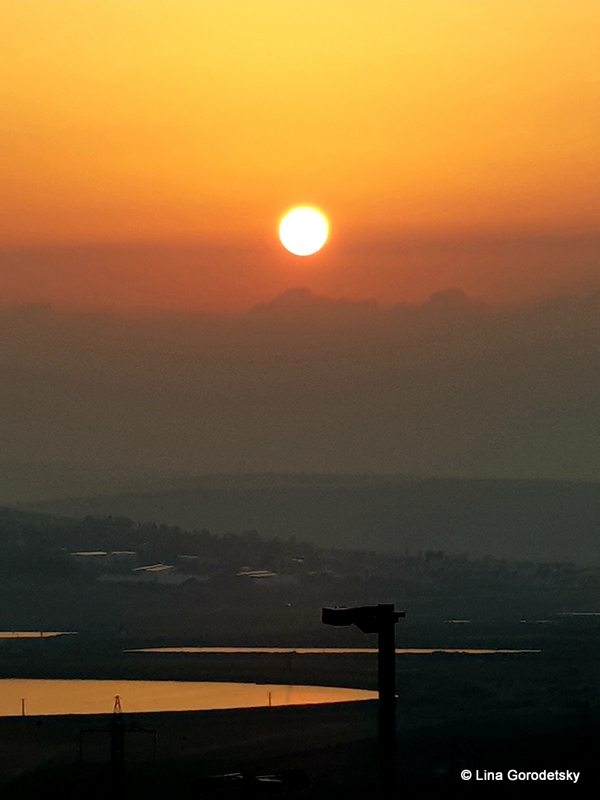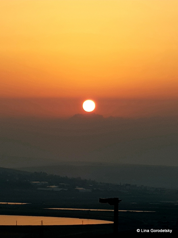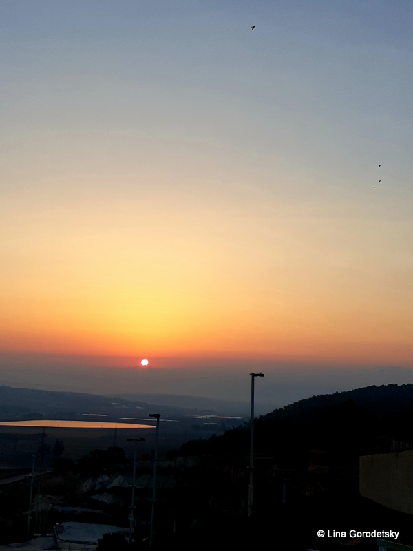 И вот, когда я уже совсем отчаялась, вдруг над долиной в розово-оранжевом тумане появилась яркая точка. Поразительно яркая. Я глазам своим не поверила. Но точка росла, бочком выходя на свет божий. Она все росла и росла, изменяя вокруг все краски и пропорции мира, и наконец, на небе вырос четкий контрастный круглый шар. Он поднимался вверх, оставляя позади все загадки сентябрьской ночи, и невозможно было насмотреться на это зрелище. Рождение нового дня. Первой пятницы еврейского 5779 года.