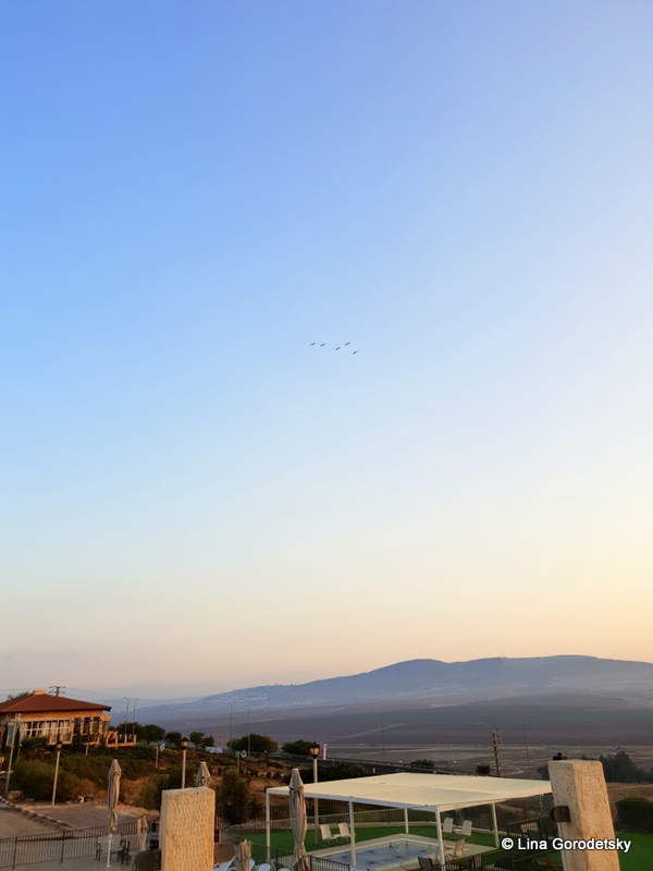 Мне даже объяснили, откуда солнышко должно появиться. Над долиной и горой Гильбоа. Но оно не появлялось. Зато в небе появился воздушный шар. Куча разных птиц. Первые автомобили. Звуки просыпающейся страны…