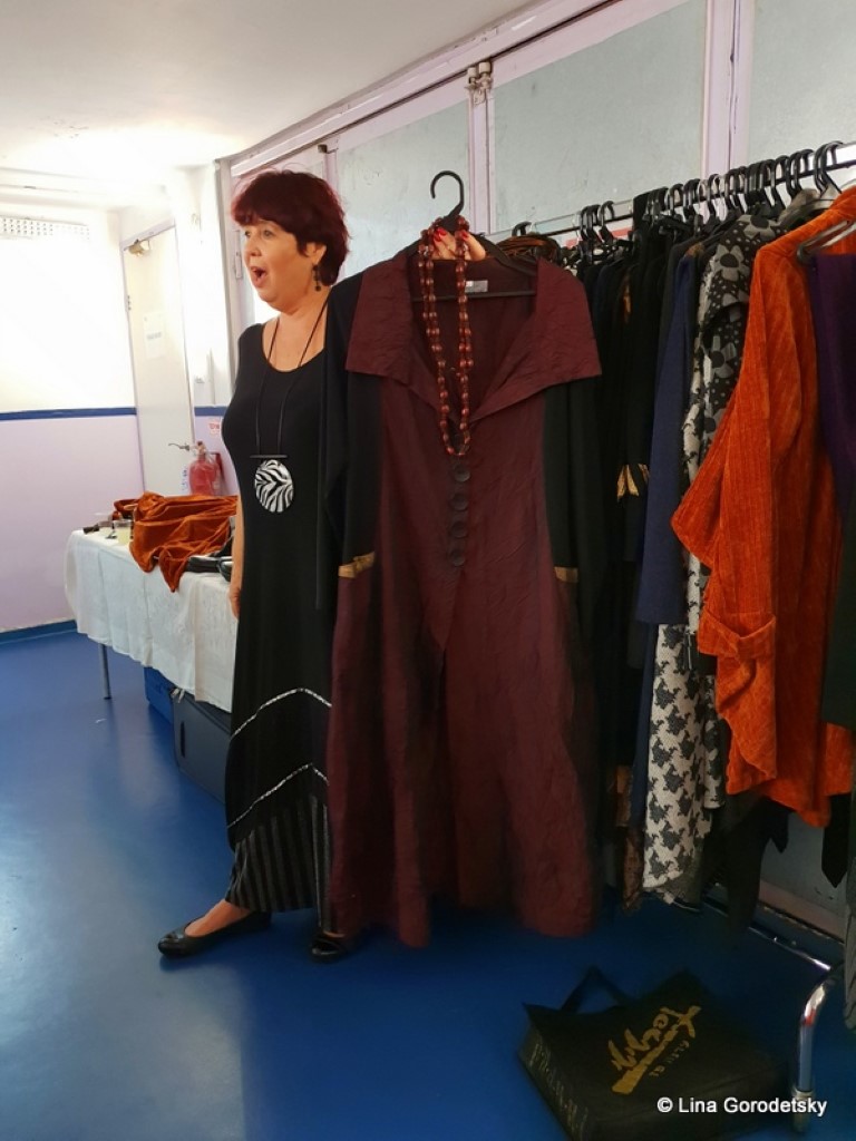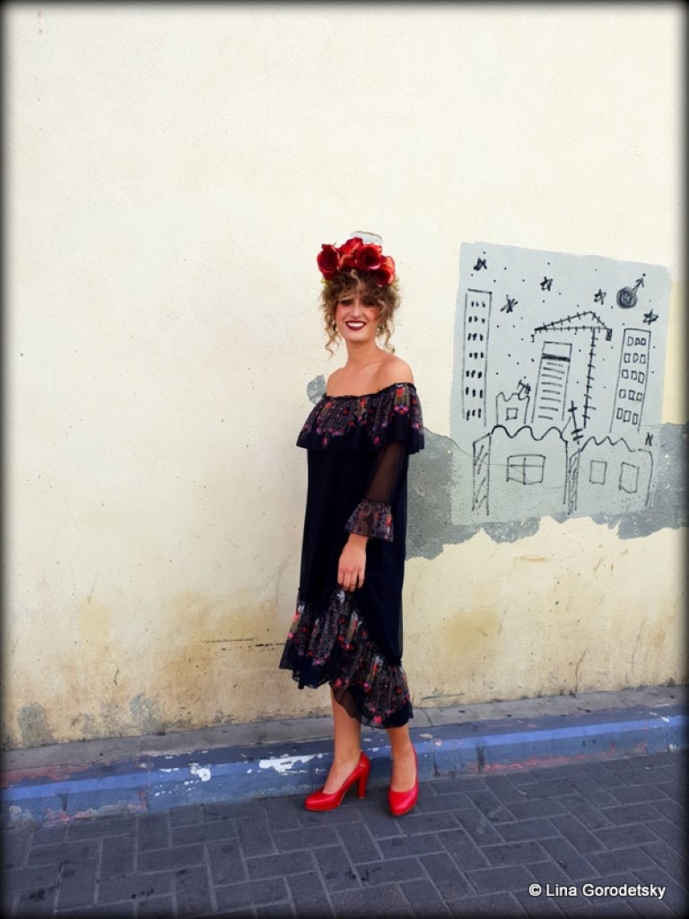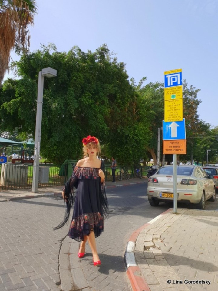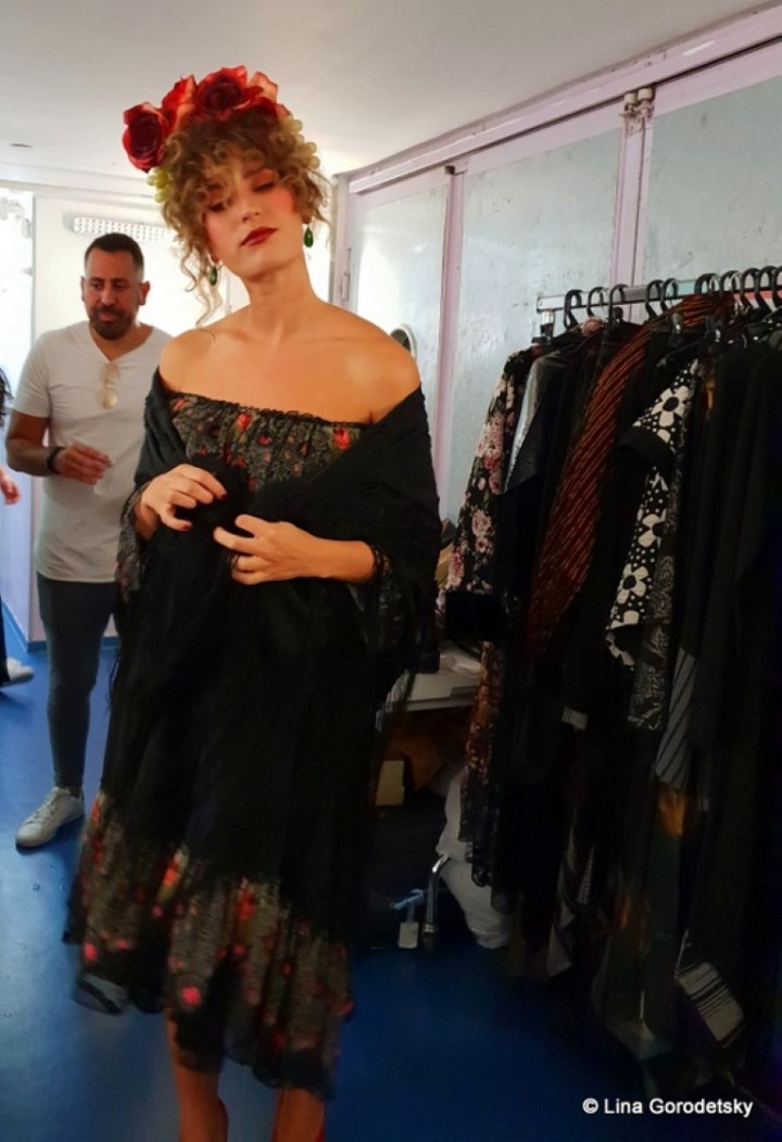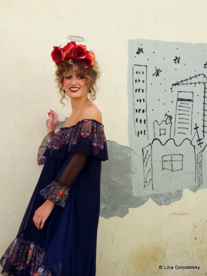 Эдна Паз представила новую коллекцию, продемонстрировала ее. В этом году в ней сделан акцент на мексиканские мотивы, яркие-сочные цвета, прекрасно сочетаются с черной классикой. Ну а венок в голове юной модели, которой стала жительница Тель-Авива, красавица Ярден Роках, это венок к стиле художницы Фриды Кало.
