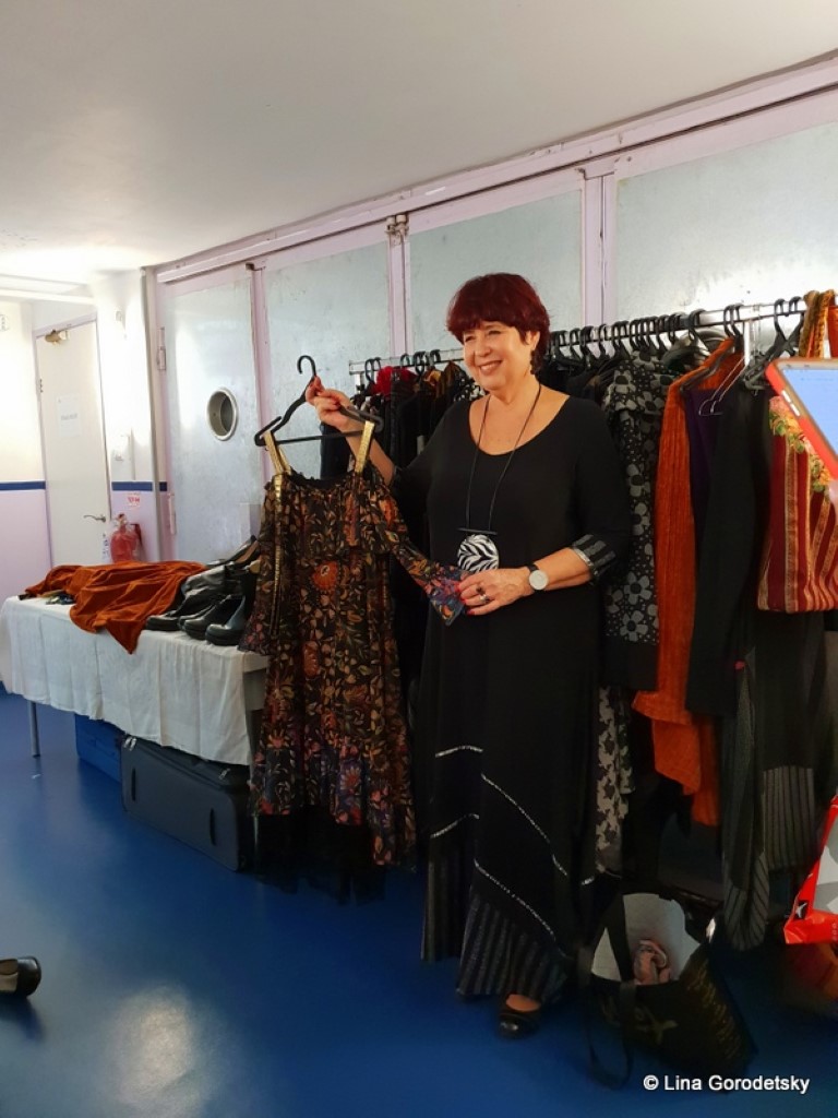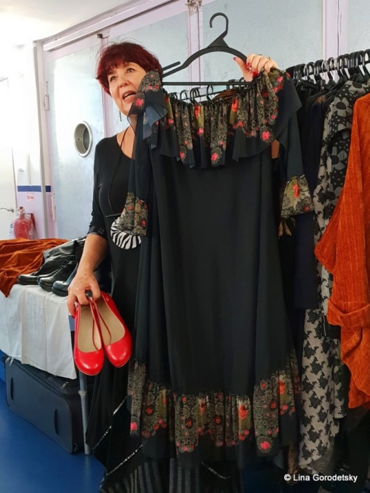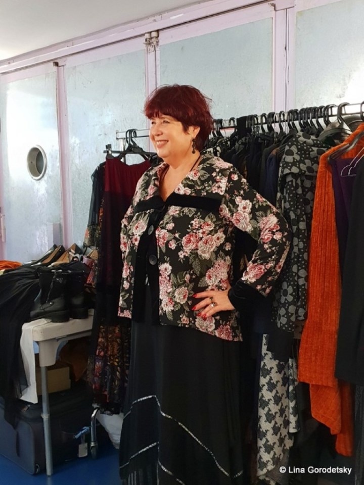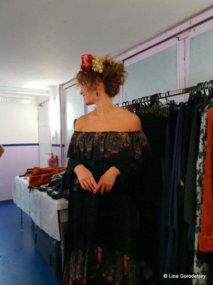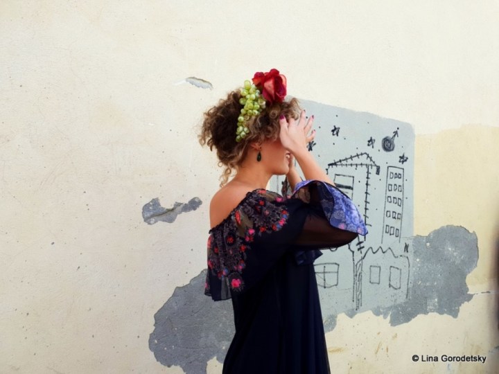 Эдна Паз представила новую коллекцию, продемонстрировала ее. В этом году в ней сделан акцент на мексиканские мотивы, яркие-сочные цвета, прекрасно сочетаются с черной классикой. Ну а венок в голове юной модели, которой стала жительница Тель-Авива, красавица Ярден Роках, это венок к стиле художницы Фриды Кало.