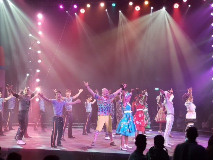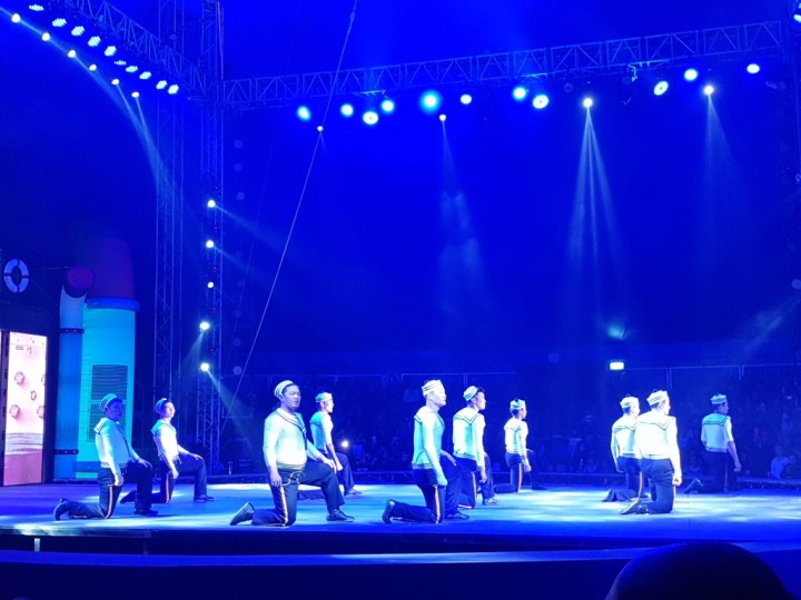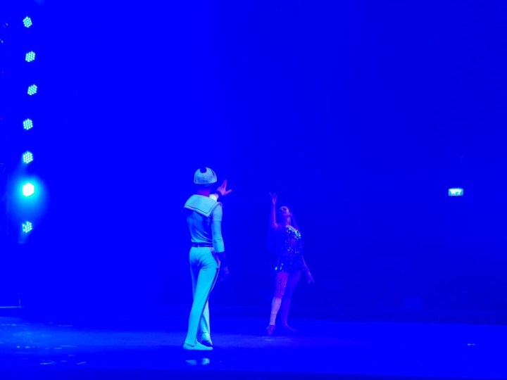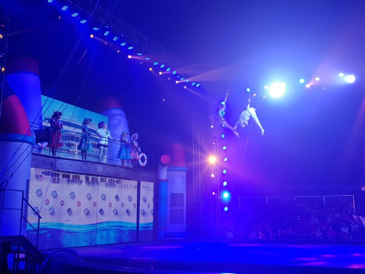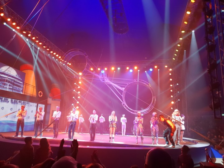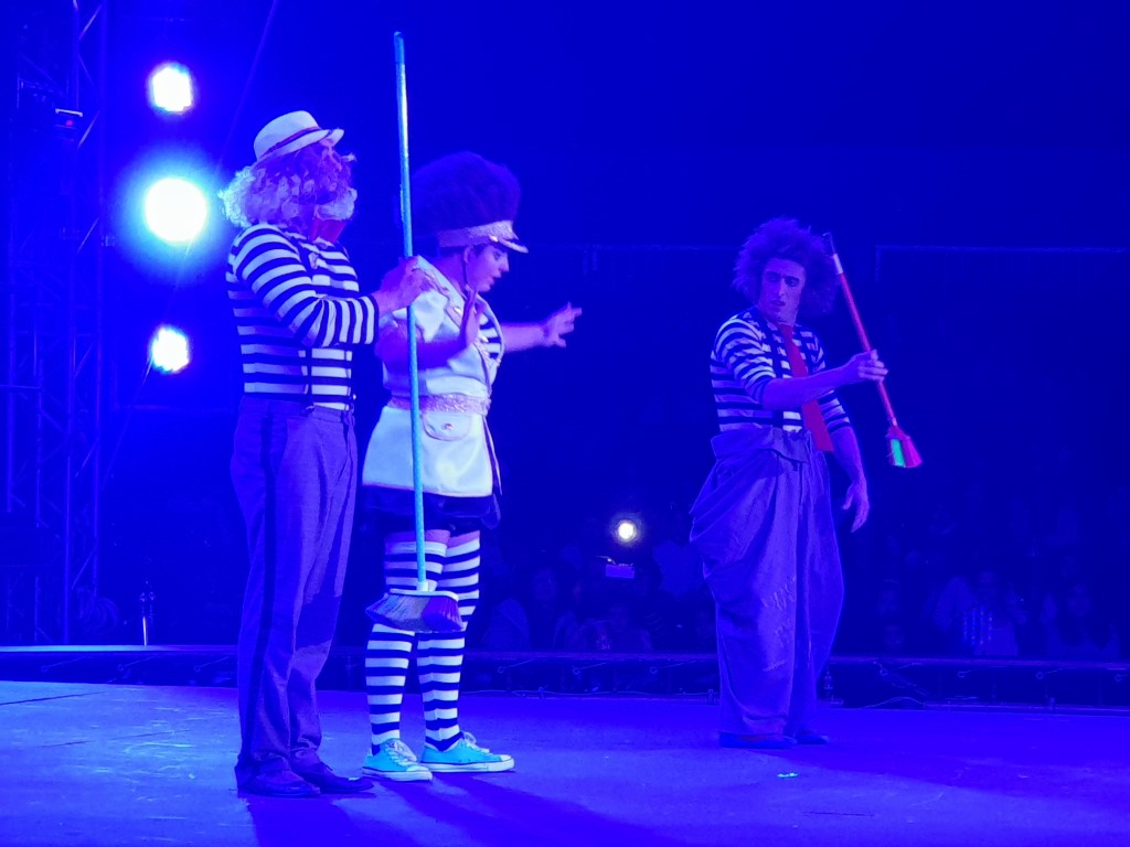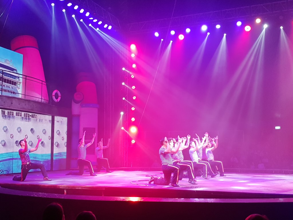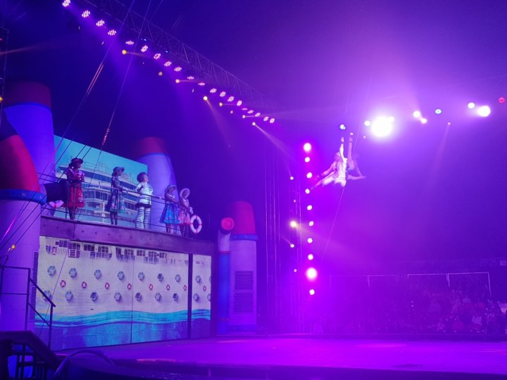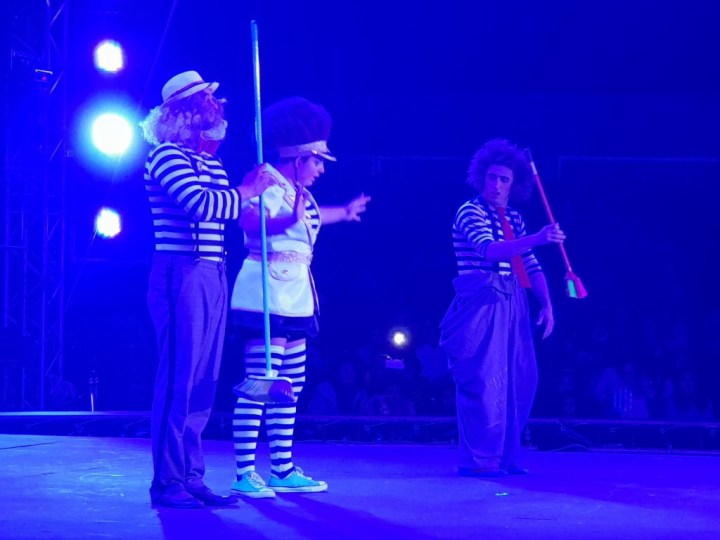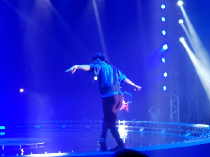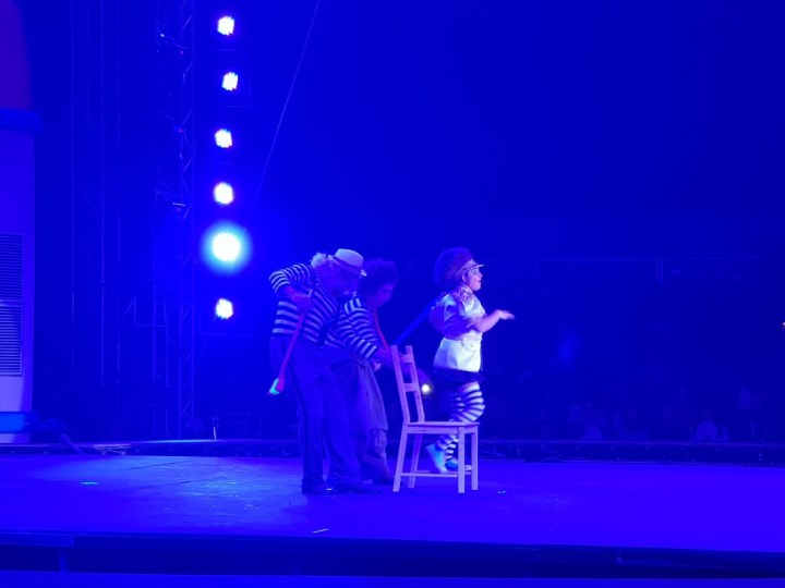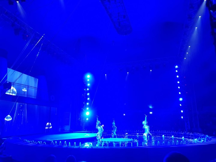 Симпатичные клоуны разнообразили действие, создавая очень живые и яркие миниатюры. Известно ведь, что настоящий клоун должен быть и акробатом, и жонглером, и совершенным мимом. Никаких дрессированных зверюшек, как было принято в нашем детстве. Ни львов, ни собачек… Но, оказывается, цирковая программа может быть разнообразной и без них. Главное — высокое мастерство! Вся программа идет в сопровождении хорошей музыки и отличных видеоэффектов. И воды! Да, совершенно неожиданно, вы оказываетесь пассажирами корабля и отправляетесь в морской круиз. Большинство цирковых номером сопровождались водными эффектами, прямо на сцене струились цветные фонтаны, и все представление было построено, как музыкальный спектакль, в котором главным действием были цирковые номера., Поставил это цирковое шоу постановщиком главный художник и режиссер театра «Гешер» Михаил Краменко, известный своими постановками также в театрах «Маюмана» и «Алюминиум-Шоу».