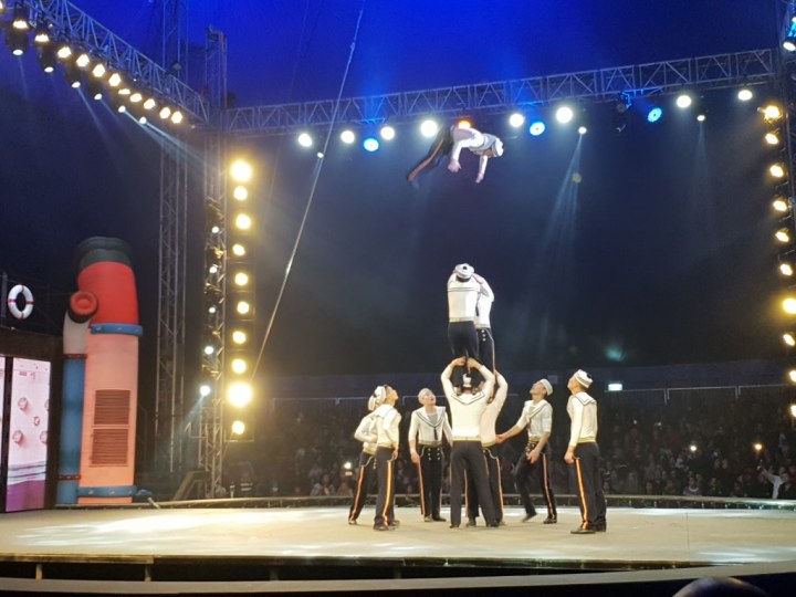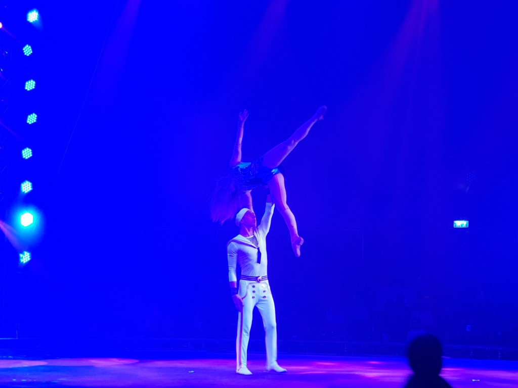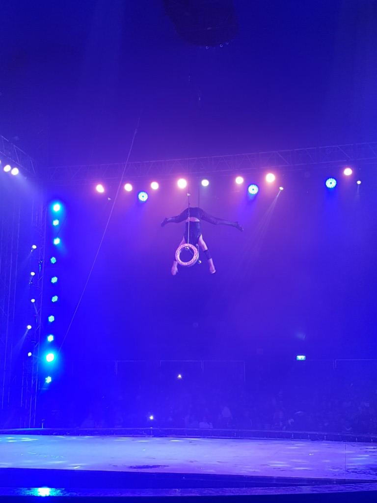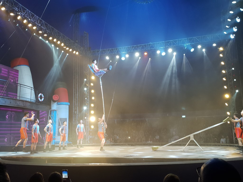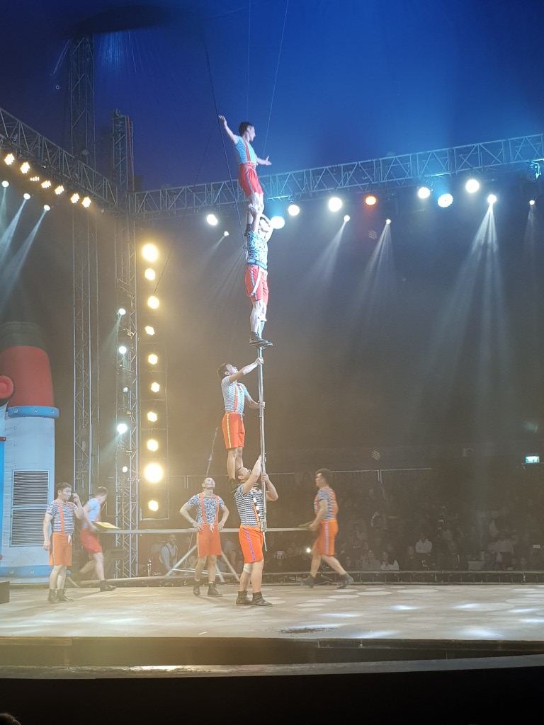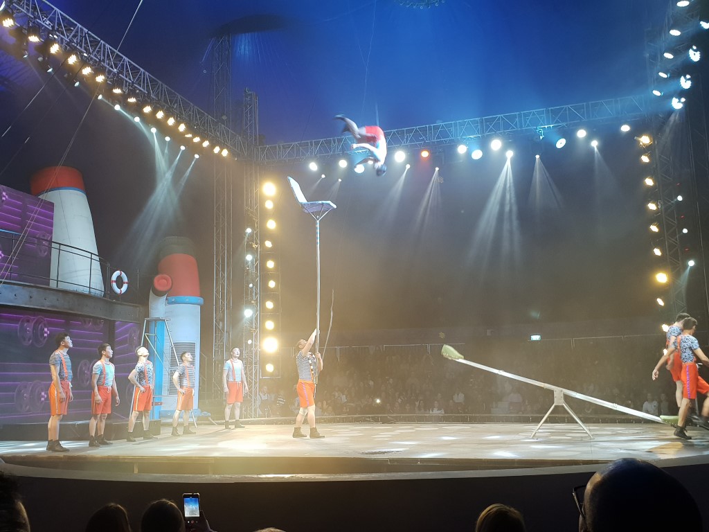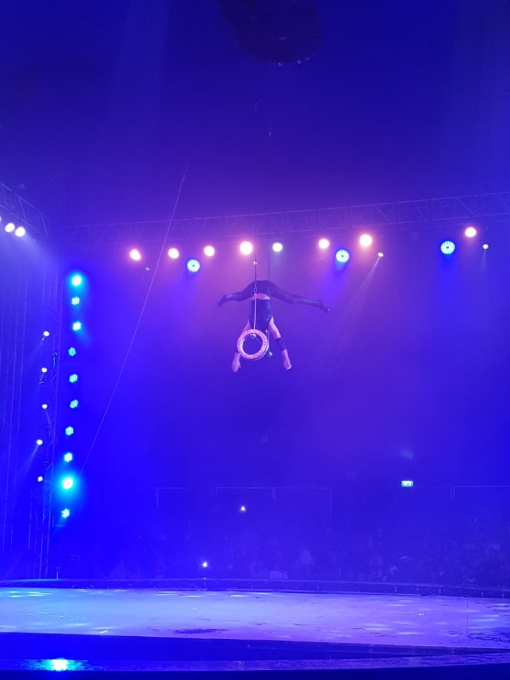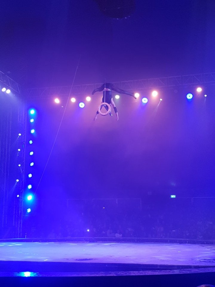 Клоунада, акробатика, эквилибристика, жонглирование, музыкальная эксцентрика, иллюзионизм, пантомима, все присутствует в большой новой программе . Два полных часа она идет, в середине — небольшой перерыв, чтобы сбросить напряжение в зрительном зале, которое растет от номера к номеру, особенно это касается, конечно, многочисленных акробатических номеров, хождение по канату, воздушную гимнастику. Эти номера проходят без страховки и надо обладать высочайшим секретом мастерства, чтобы спокойно, с неизменной улыбкой такой номер выполнить. Конечно, на бис. Причем и дети и взрослые не жалели ладоши. И я лично очень радовалась и успокаивалась, когда артисты уже спускались на землю.